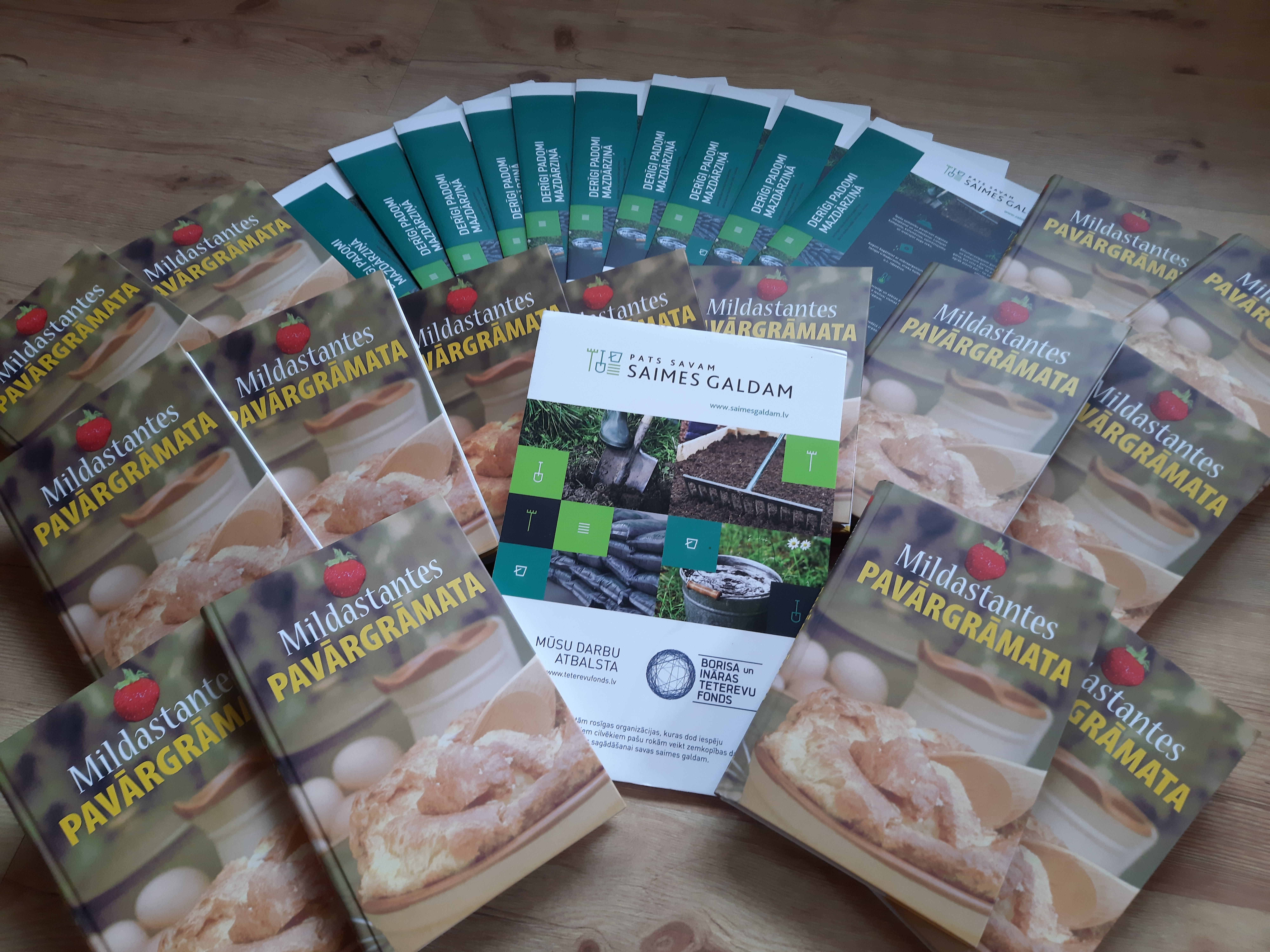 Katra ģimene dāvanā saņēma arī recepšu grāmatu “Mildas tantes pavārgrāmata” un dažādu konservu receptes, lai būtu, kur smelties idejas gan ikdienas, gan svētku maltīšu gatavošanai, gan ziemas krājumu pagatavošanai.