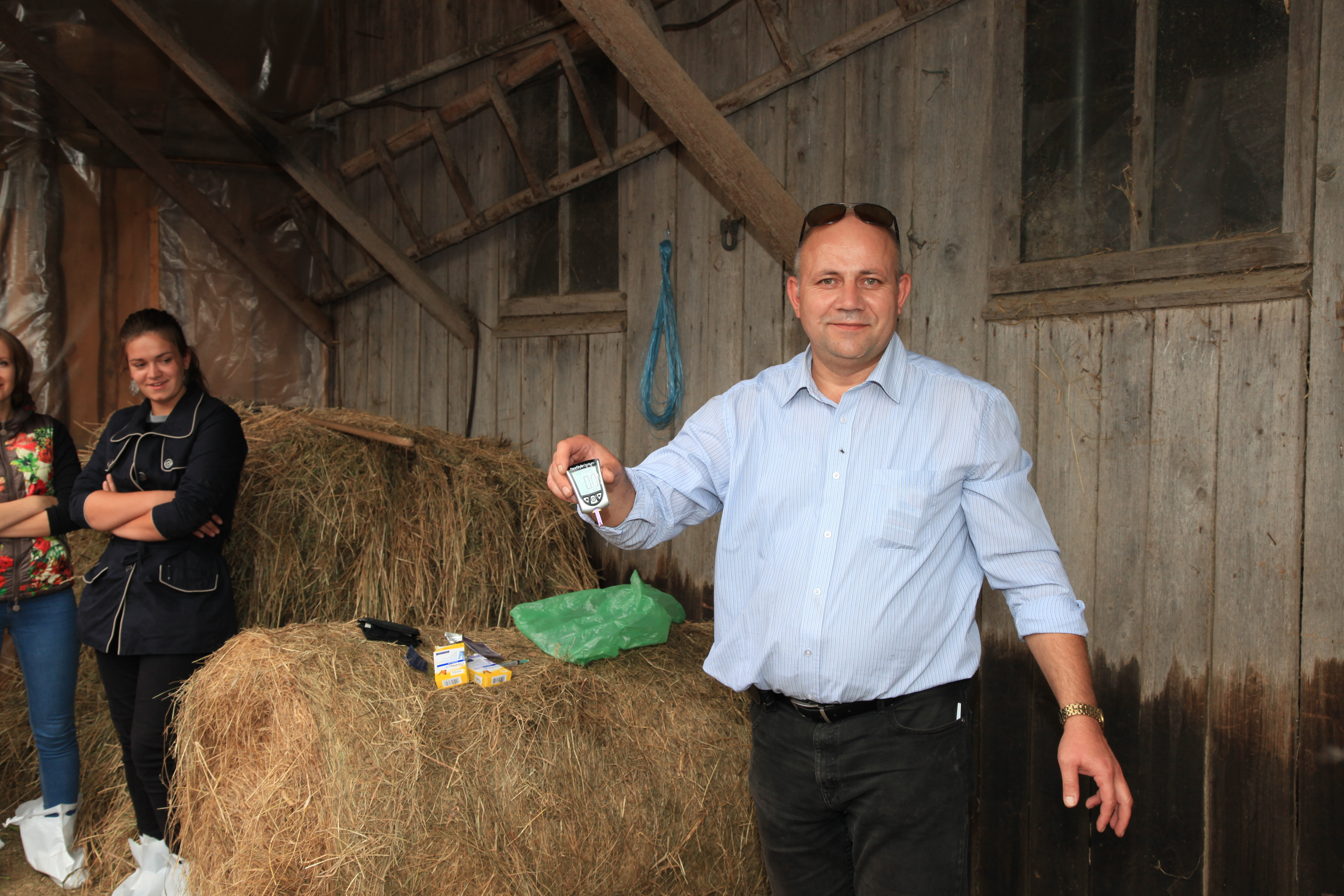 Tālāk Kristīnes pavadībā dalībnieki devās apskatīt saimniecību, kazu ganāmpulku, demonstrējuma grupu dzīvniekus un novietni. Lai laikus konstatētu un novērstu vielmaiņas problēmas, Dainis Arbidāns, LLKC Lopkopības nodaļas konsultants–eksperts veterinārmedicīnā, klātesošos iepazīstināja ar ekspres metodēm, kā noteikt ketonvielas glikozes līmeni kazu asinīs, ar kuru palīdzību nekļūdīgi var laikus identificēt ketozi (acetonēmiju) kazām jebkurā fizioloģiskajā stāvoklī. Fermu dienas izskaņā ikviens no klātesošajiem varēja uzdot jautājumus gan speciālistiem un profesorei, gan saimniecei.