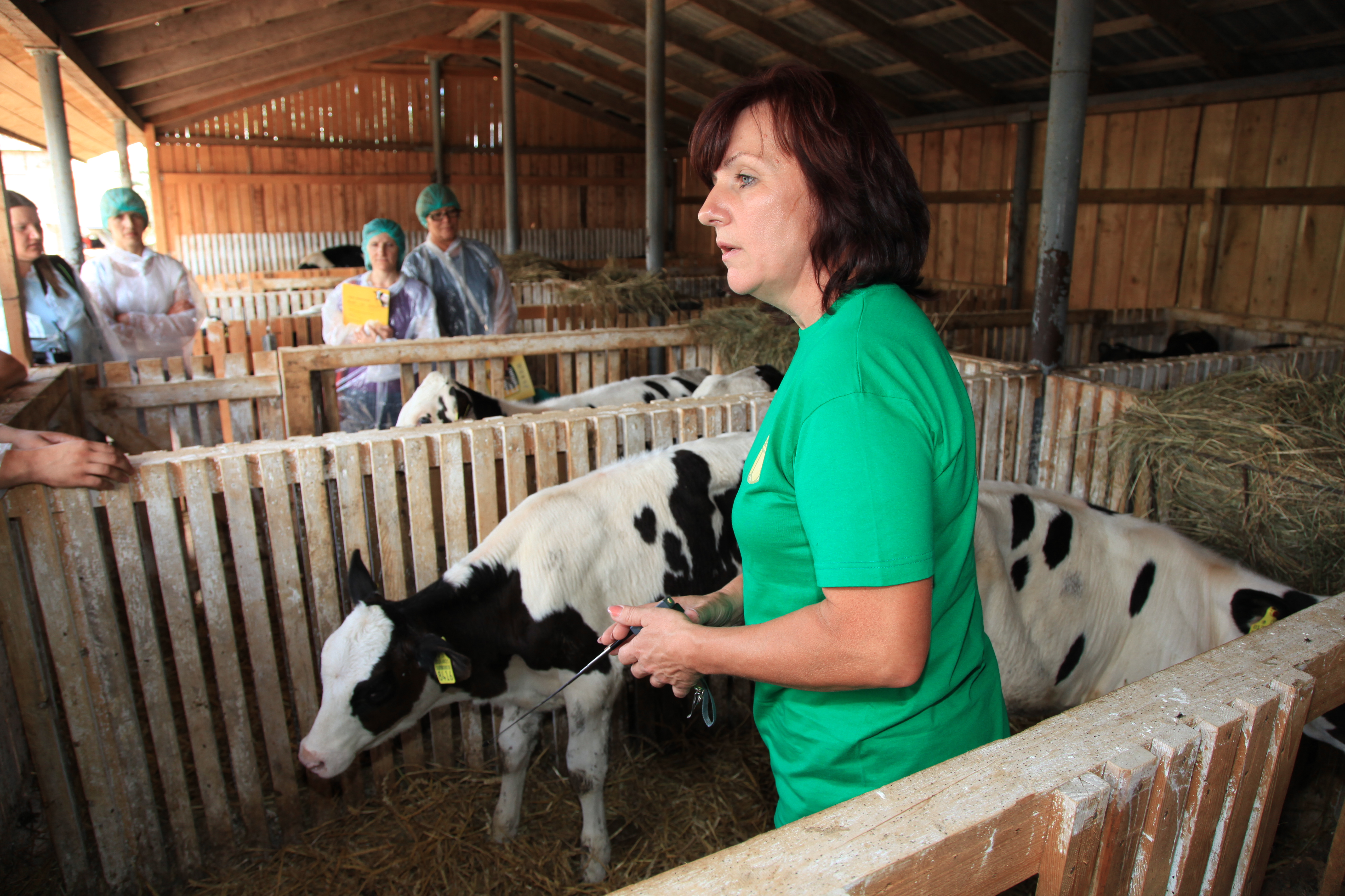 Tālāk fermu dienas dalībnieki devās uz teļu novietnēm LLU MPS „Vecauce” direktores vietniece mācību darbā Indras Eihvaldes pavadībā. Viņa stāstīja, ka teļiem piecas dienas tiek izbarots jaunpiens, tālākā periodā koppiens. Pirmajos dzīves mēnešos telīte dienā patērē 4–6 kg piena, dzīvmasai pieaugot, tā spēj patērēt pat 8 kg piena dienā. Izēdināmajam pienam tiek pievienots paskābinātājs. Pienu telītēm izēdina, kamēr tās sasniedz ap 100 kg dzīvmasas un ir iemācījušās ēst koncentrātus un rupjo barību. Kad teļš jau nonāk vecākā grupā, galvenā barības bāze ir 6 kg, augstražīgo govju barības maisījums brīvi pieejams, dzeramais ūdens neierobežotā daudzumā. Telītei 6 mēnešos vajadzētu sasniegt ap 180–200 kg dzīvmasas, tā Indra.