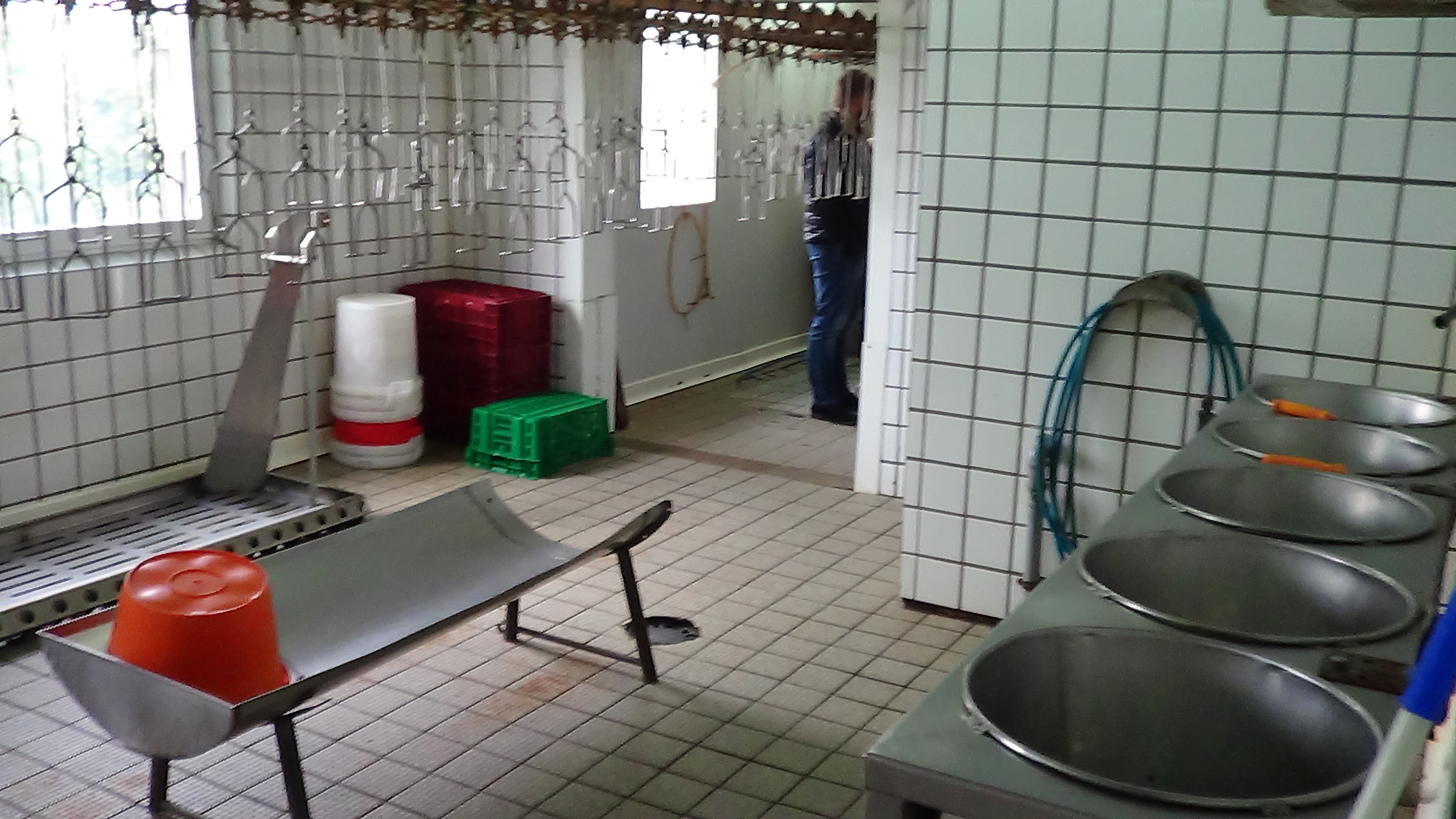 Putnu kautuvē apdullināšana notiek ar elektrību, izmantojot trīs jaudas stiprumus. Putni tiek salikti vannā, piespiesti un noplucināti karstā ūdenī. Lai atdalītu visas spalvas, tiek izmantots pārtikas vasks – epilācija. Vienā stundā var apstrādāt 100 putnus, dienā – 500. Veterinārārsts putnus apskata novietnē pirms došanās uz kautuvi. Kautuvē higiēnas pārbaudes notiek vismaz divas reizes mēnesī. Veterinārās pārbaudes – trīs, četras reizes gadā. Notiek arī elektrības pārbaudes.
