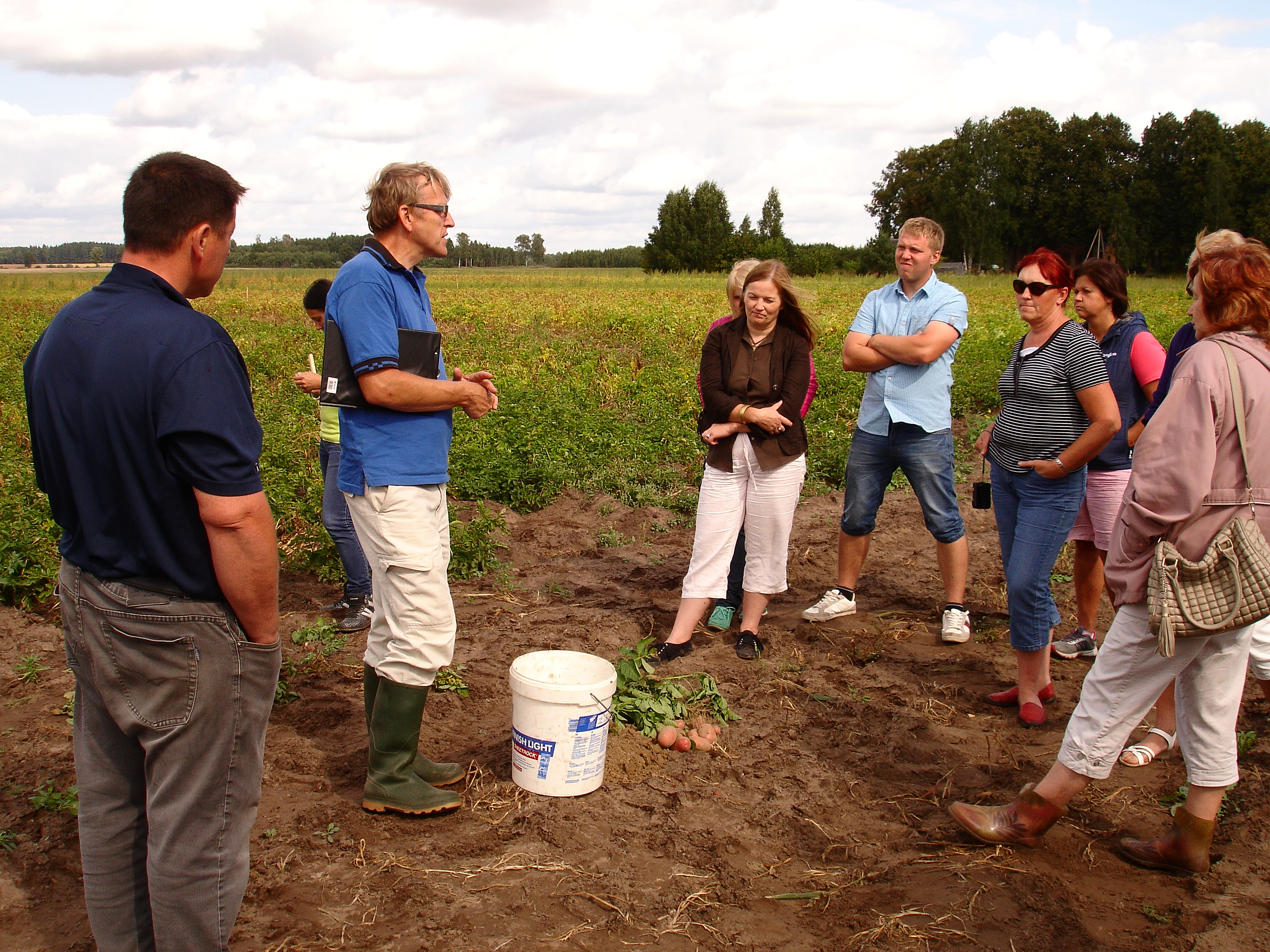„Demonstrējumā četros variantos galveno kartupeļu slimību – kartupeļu lakstu puves un kartupeļu sausplankumainības –apkarošanas dažādām stratēģijām tika izmantoti kopumā seši dažādas iedarbības fungicīdi. Demonstrējums tika iekārtots kartupeļu šķirnēm ‘Laura’ (galda kartupeļu šķirne) un kartupeļu šķirnei ‘Verdi’, kas kļūst par vienu perspektīvākajām šķirnēm pārstrādei čipsos. Kopumā var secināt, ka šis gads nav bijis lakstu puves gads, bet pēdējās dienās laika apstākļi ir strauji mainījušies, tādēļ augsti produktīvos stādījumos, it sevišķi vēlākos stādījumos, vēl būs nepieciešami smidzinājumi ar kontakta iedarbības fungicīdiem. Tomēr kartupeļu sausplankumainība un sausums atstāja savu negatīvo ietekmi. Sevišķi krasi tas pierādījās šķirnei ‘Laura’, kurai bija vecāks stādāmais materiāls nekā citā saimniecības laukā. Starpība arī tika parādīta. Šis ir uzskatāms piemērs tiem kartupeļu audzētājiem, kuri novilcina jauna kartupeļu sēklas materiāla iepirkšanu. Pareizi pielietoti, savas funkcijas pilda visi fungicīdi. Ar līdzvērtīgiem rezultātiem tika parādīts integrētais – uz eksperta ieteikumiem balstītais variants, kurā tika izmantoti mankoceba d.v. nesaturošie fungicīdi (Glorija, Revus Top un Leimay SC). Aktuālas kļūst arī citas slimības kartupeļu stādījumos, piemēram, kartupeļu antraknoze, ar kuru semināra dalībnieki tika iepazīstināti gan prezentācijā, gan uz lauka. Klātesošie varēja iepazīties ar kopējo kartupeļu nozares stāvokli, ko prezentēja Aiga Kraukle (Kartupeļu audzētāju un pārstrādāju savienība), savukārt Anitra Lestlande no Valsts augu aizsardzības dienesta (VAAD) pastāstīja par integrētās augu aizsardzības mājaslapā gūstamo informāciju un aktuālo situāciju tieši kartupeļu slimību jomā. Uz lauka izvērsās karstas diskusijas par fungicīdiem, to pielietošanu, slimībām. Diskusijās piedaloties arī vēl firmai Syngenta, Ilzei Skrabulei no Valsts Priekuļu laukaugu selekcijas institūta, kā arī prezentāciju autoriem un vēl pārstāvjiem no Zemkopības ministrijas un VAAD prognožu daļas speciālistiem, diskusijas vērtās jo spraigas. Ar savu vairāku gadu desmitu ilgo kartupeļu audzēšanas pieredzi dalījās arī z/s „Amoliņi” īpašnieks Juris Strēlnieks.”