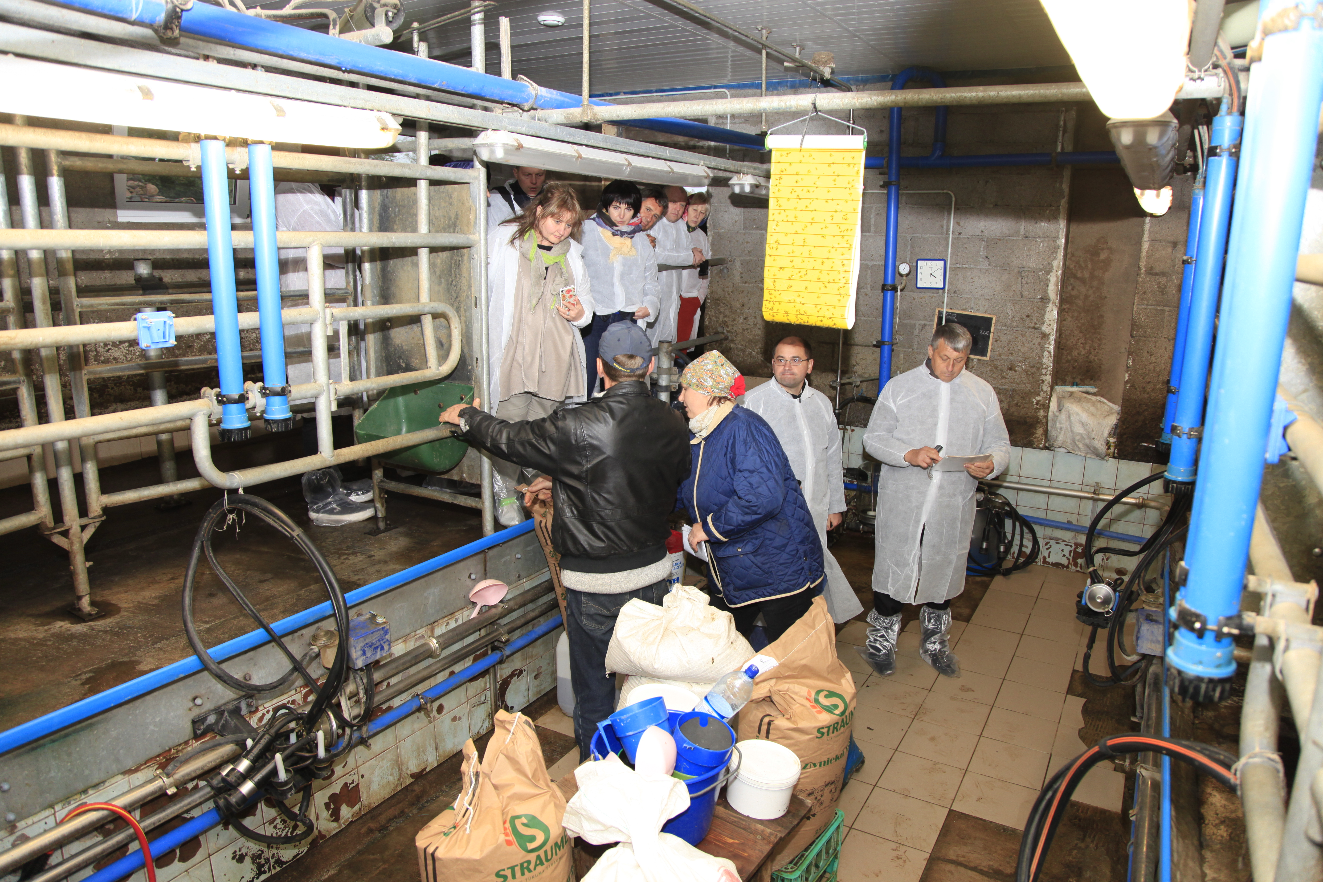 Lai dalītos pieredzē un uzskatāmi parādītu Ukrainas delegācijai, kā Latvijā tiek nodrošināti svaigpiena kvalitātes rādītāji atbilstoši Eiropas Padomes Regulas Nr. 853/2004 prasībām, Latvijas Lauku konsultāciju un izglītības centrs piedāvāja viesiem no Ukrainas apmeklēt kooperatīvo sabiedrību “Straupe”, z/s “Vienotnes” Pārgaujas novadā, LLU MPS “Vecauce” Auces novadā un z/s “Lejasriepji” Tukuma novadā. Kooperatīvās sabiedrības “Straupe” priekšsēdētājs Imants Balodis uzsvēra, ka pienu iepērk no kooperatīva biedriem, kas spēj nodrošināt minimālās svaigpiena prasības: baktēriju KVV nepārsniedz 100 tūkst. un somatisko šūnu skaits 1 ml piena nepārsniedz 400 tūkst. Piena piegādes temperatūra pienotavā nedrīkst būt augstāka par +10 ° C. Lai šīs svaigpiena kvalitātes prasības nodrošinātu, LLU MPS “Vecauce” organizējām iespēju Ukrainas viesiem piedalīties slaukšanas procesā, vērot to, kā arī pašiem pamēģināt pareizi sagatavot govi slaukšanas procesam un pievienot govij slaukšanas iekārtu.