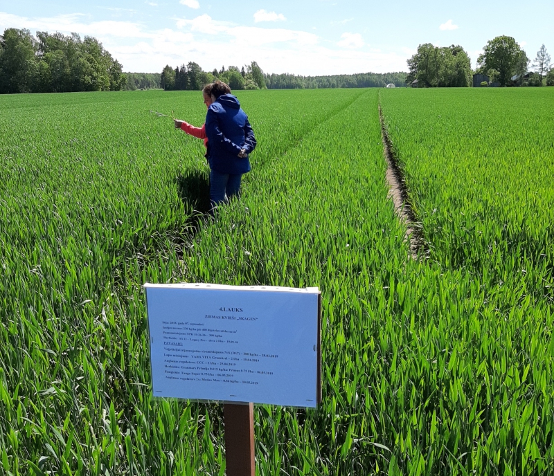 Lauka dienas noslēgumā visi dalībnieki devās apskatīt demonstrējuma laukus, kur VAAD vecākā inspektore Māra Bērziņa veica lauku monitoringu – noteica kaitīgo organismu izplatību un attīstības pakāpes ziemas kviešos. Inspektore bija paņēmusi līdzi uzskates materiālus ar kaitēkļu bojājumiem un slimību pazīmēm, jo saimniecības laukos šādus bojājumus nevarēja atrast. Zemnieki apskatīja salīdzinājumu laukus, kur katrā lietoti atšķirīgi minerālmēsli dažādās kviešu augšanas stadijās. Kopumā atbraukušie zemnieki ieguva vērtīgas zināšanas par graudaugiem, to mēslošanu, stresa pārvarēšanu, lai iegūtu augstas ražas.