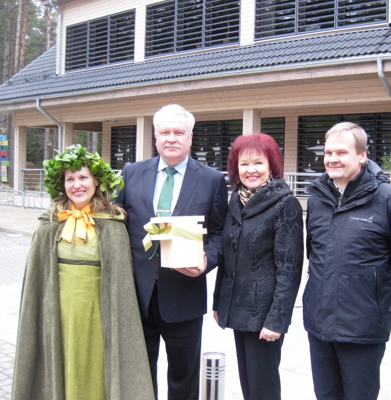 Noslēgumā ministrs apmeklēja Latvijas Valsts mežu dabas parku Tērvetē, lai apskatītu jauno koka gājēju tiltu. Pasaku meža rūķi bija pagatavojuši speciālu dāvanu ministram – putnu būrīti, ko ministram nodeva Meža māte.
