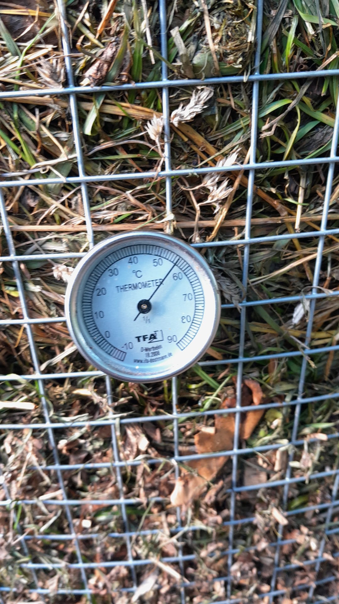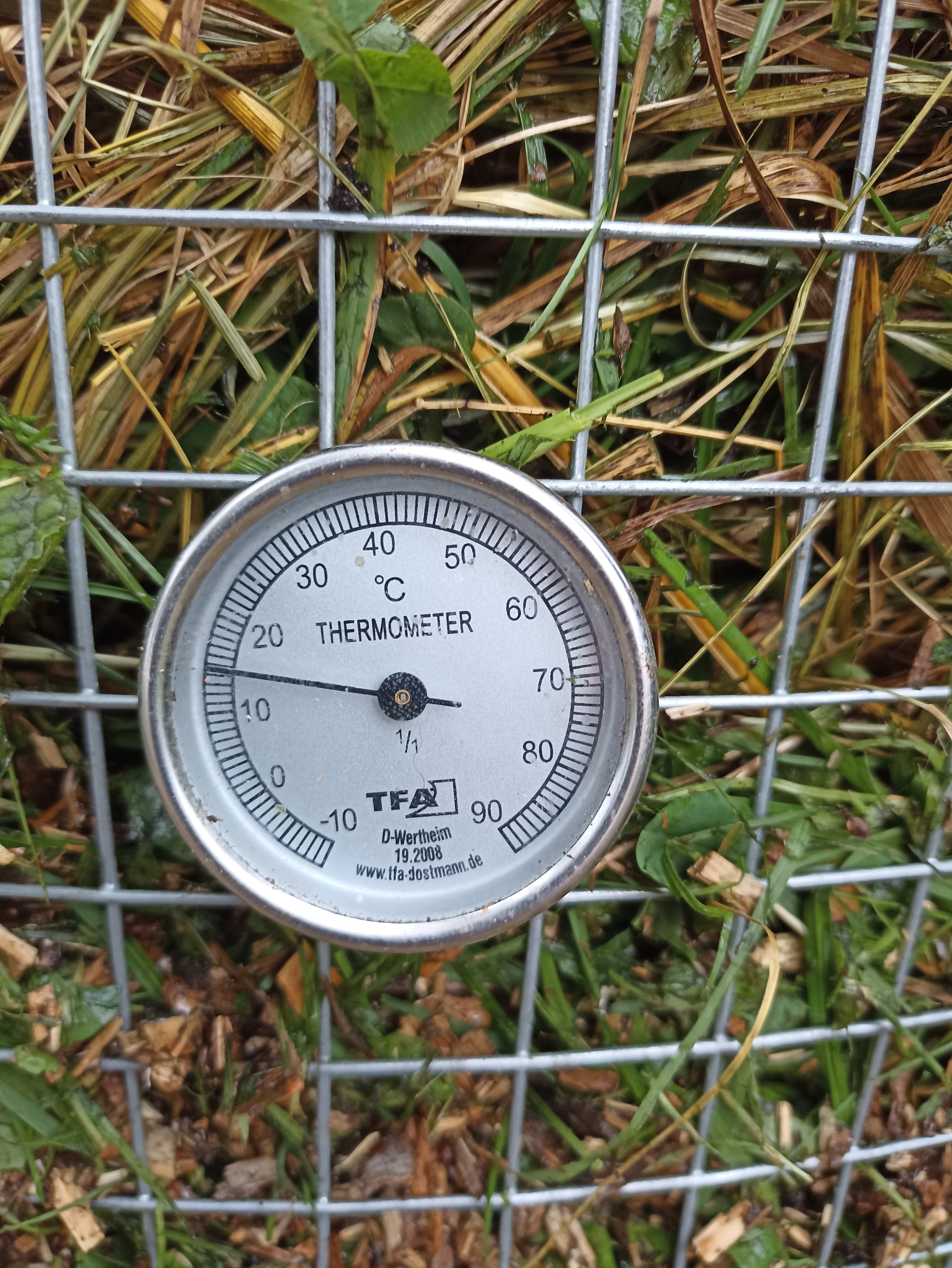 Kompostējamā materiālā par “brūno” masu izmanto kūtsmēslus, sienu, salmus, sausās lapas. “Zaļā” masa – svaiga zāle, nezāles u. c. Kompostā ir jānodrošina temperatūra – pietiekami augsta, pietiekami ilgi, visā kaudzē. Lai veiktu temperatūras monitoringu, izmanto komposta termometru, kas iesprausts kaudzē līdz tās centram. Kaudzi pārklāj, lai nenotiktu izskalošanās.