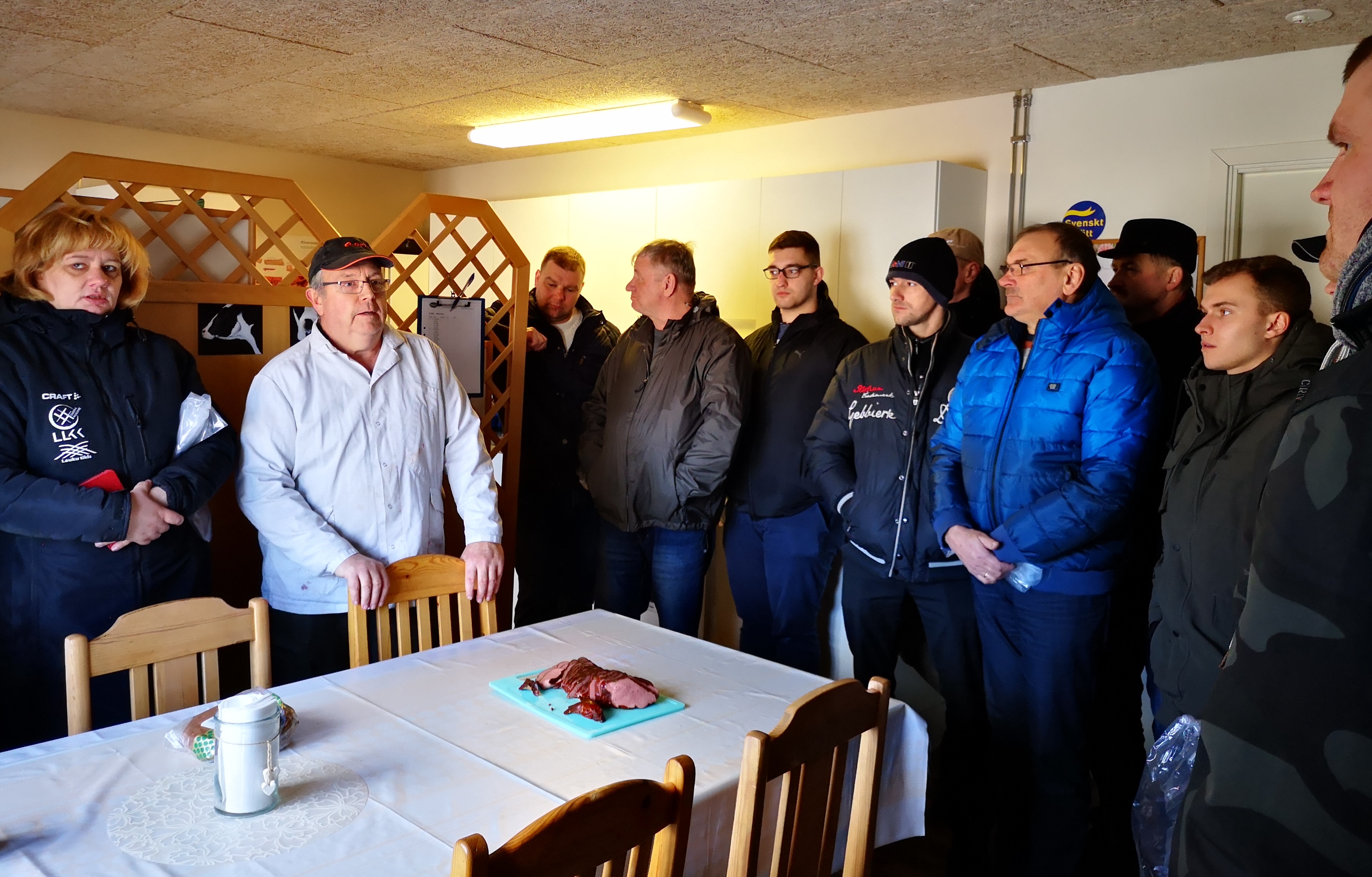 Dienas otrajā daļā tika uzklausīts Gorana Jonsona stāsts par gaļas liellopu audzēšanu un nobarošana vietējam tirgum. Gorans ir izveidojis saimniecību un ar bioloģisko gaļas liellopu audzēšanu nodarbojas kopš 1991. gada. Tiek audzēti Herefordas šķirnes liellopi. Saimniecības īpašnieks uzskata, ka šīs šķirnes dzīvnieki ir mīlīgāki un nav tik prasīgi kā, piemēram, Šarolē vai citas šķirnes dzīvnieki. Saimniecībā tiek turētas 60 zīdītājgovis plus 60 jaunlopi. Apsaimnieko 180 ha platības, no tām 60 ha ir sētie zālāji un 120 ha ganības. Platībās tiek audzēta un sagatavota lopbarība tikai saimniecības ganāmpulkam. 40-50 % zīdītājgovis tiek sēklotas mākslīgi no marta līdz aprīlim. Tad govju ganāmpulkā ielaiž bulli, kas sēklošanas procesu pabeidz. Bullis ganāmpulkā atrodas 3 mēnešus, līdz ar to atnešanās periods neievelkas. Zīdītājgovju atnešanās sākas decembrī. Jaundzimušie teļi tiek svērti 4 dienu laikā pēc atnešanās. Vasaras periodā govis ganās ganībās un ir sadalītas 2 grupās – zīdītājgovis ar dzimušajām telītēm un zīdītājgovis ar piedzimušajiem bullīšiem, lai jaunie bullīši neaplecina mazās telītes. Septembrī, oktobrī teļus nošķir no zīdītājgovīm un sver, pārrēķinot svaru uz 200 dienām. Daļa atšķirto teļu tiek nobaroti saimniecībā. Īpaša uzmanība tiek pievērsta ģenētikai, jo pārdod arī vaislas buļļus. Katru gadu no saimniecības 1-2 jaunbuļļi nonāk testēšanas stacijā. Šajā sezonā saimniecībā atnesušos telīšu svars bija 43 kg un bullīšu svars 44 kg. Atšķirot telītes bija sasniegušas 284 kg, bet bullīši 283 kg, kas saistāms ar to, ka bullīšu mammas atradās sausākās ganības, jo arī pagājušajā gadā Zviedrijā bija liels sausums tāpat ka Latvijā. Sverot telītes 1 gada vecumā, tās bija sasniegušas 377 kg, savukārt bullīši – 491 kg. Liellopu gaļas cena kautsvarā ir 4 eiro/kg. Lai nodrošinātu salīdzinoši vieglas dzemdības, pamatfaktors, kas jāievēro – barība. Tām zīdītājgovīm, kas vēl nav atnesušās, barībā ir salmi. Pēc atnešanās jānodrošina kvalitatīva un sabalansēta lopbarība. Lai arī saimniecība saimnieko ar bioloģiskās saimniekošanas metodēm, lopi ir atragoti, un tas ir atļauts. Lai nodrošinātu lopu nošķiršanu, tos netramdot, saimniecībā pie dzīvnieku barošanas galda ir uzstādīta fiksējoša iekārta. Saimniecība izmanto ES atbalstu pamatlīdzekļu iegādei un saimniecības straujākai attīstībai. Gorans Jonsons ir ne tikai savas saimniecības īpašnieks, bet arī Nacionālās gaļas liellopu audzētāju asociācijas vadītājs. Viņš pastāstīja, ar ko tā nodarbojas. Organizācijas pamatuzdevumi ir uzturēt ciltsgrāmatu un jaunbuļļu pārbaudes stacijas, papildus tā organizē 1-2 dzīvnieku izstādes gadā. Ciltsgrāmatā ir aptuveni 200 000 zīdītājgovju, visvairāk Šarolē šķirnes, pēc tam seko Herefordas šķirnes dzīvnieki. Ciltsdarbam un pārraudzībai ir pievērsta īpaša uzmanība, lai iegūtu precīzus datus. Jaunlopus sver piedzimstot, atšķirot un, kad tie ir sasnieguši 1 gada vecumu, jo no šiem pamatrādītājiem tiek veidoti indeksi, kas atspoguļojas dzīvnieku vērtējumā. Tāpat ir svarīgs dzīvnieku atnešanās vieglums un mātes īpašības – augšanas un kautķermeņa indekss. Ja rādītāji nesasniedz noteiktās normas, dzīvnieks neiekļaujas šķirnes prasībās. Zviedrijā ļoti populāri ir toli dzīvnieki. Gorans atzīst, ka Zviedrijā daudz tiek strādāts pie dzīvnieku ģenētikas izkopšanas un uz šejieni var doties pēc kvalitatīviem vaislas dzīvniekiem.