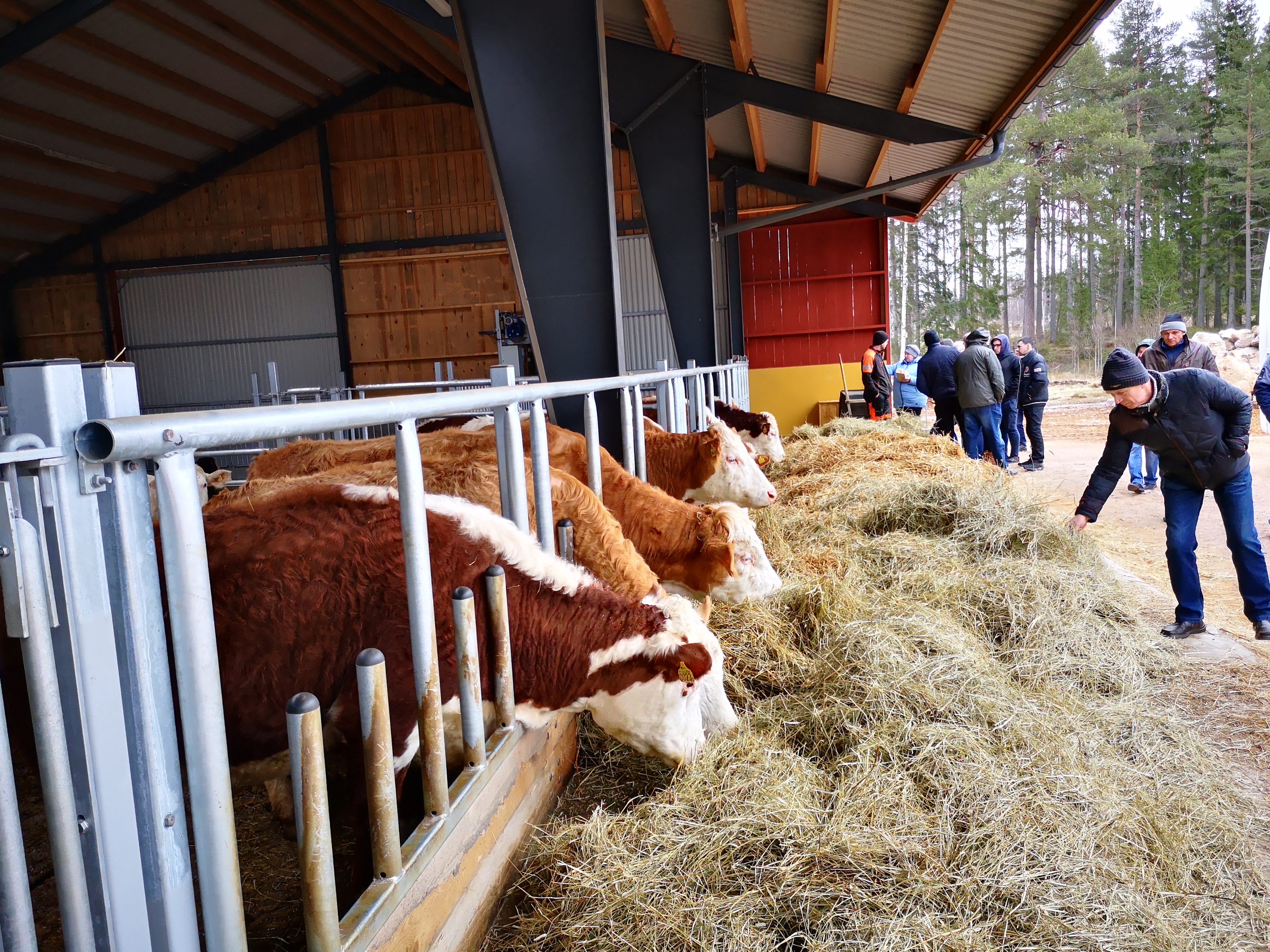Brauciena noslēgumā devāmies apskatīt Hansa Karlssona saimniecību. Tā apsaimnieko 50 ha lauksaimniecībā izmantojamās zemes, 30 ha dabīgās ganības un 125 ha mežu. Tā kā pagājušā vasara bija ļoti sausa, līdzīgi kā Latvijā, saimniecība bija spiesta samazināt lopu skaitu, jo bija saražota tikai puse no nepieciešamās lopbarības. Šobrīd saimniecībā ir nedaudz virs 40 zīdītājgovīm plus jaunlopi, kuri ir dzimuši saimniecībā, un jaunlopi, kuri tiek iepirkti no citām saimniecībām. Tiek audzēti Aberdianguss, Simentāļi un citu krustojumu dzīvnieki. Lai nobarojamajiem dzīvniekiem neradītu stresu, vedot uz kautuvi, nu jau 2 gadus lopi tiek kauti mobilajā kautuvē. Cena ir augstāka, nekā kaujot parastajās kautuvēs. Vienā reizē vidēji tiek kauti 4-5 lopi. Lopi tiek kauti, sasniedzot 14-16 mēnešu vecumu, vidējais kautsvars 390-400 kg. Teles tiek lecinātas 12-14 mēnešu vecumā. Lopus nobarošanai saimniecība iegādājas rudenī, un to svars ir ap 300 kg. Vidēji cena par 1 kg gaļas ir 4 eiro. Šobrīd saimniecība saimnieko konvencionāli. Iepriekš saimniekoja ar bioloģiskas saimniekošanas metodēm, bet, tā kā apsaimniekotās platības ir salīdzinoši mazas, ar bioloģiskajām metodēm saražot lopbarību nav iespējams. Liellopu mītne tika uzbūvēta 2001. gadā, un tajā kopā var ietilpt 120 dzīvnieki. Saimnieks atzīst, ka, būvējot kūti, visas detaļas tika pārdomātas, izmantotas metāla konstrukcijas, lai nepieciešamības gadījumā salīdzinoši vienkārši kūti varētu pārveidot par tehnikas nojumi vai zirgu manēžu. Kūts konstrukcija ir veidota tā, lai vidū nebūtu nekādu stabu, jo tas sarežģītu pārbūvi. Saimniecībā tiek uzkrāti notekūdeņi, lai nodrošinātu kūtsmēslu atšķaidīšanu. Saimniecībai ir vairāki projekti un pavisam nesen uzsākta vēl viena nozare – sagatavo apbūves teritorijas vasarnīcu un māju ierīkošanai.