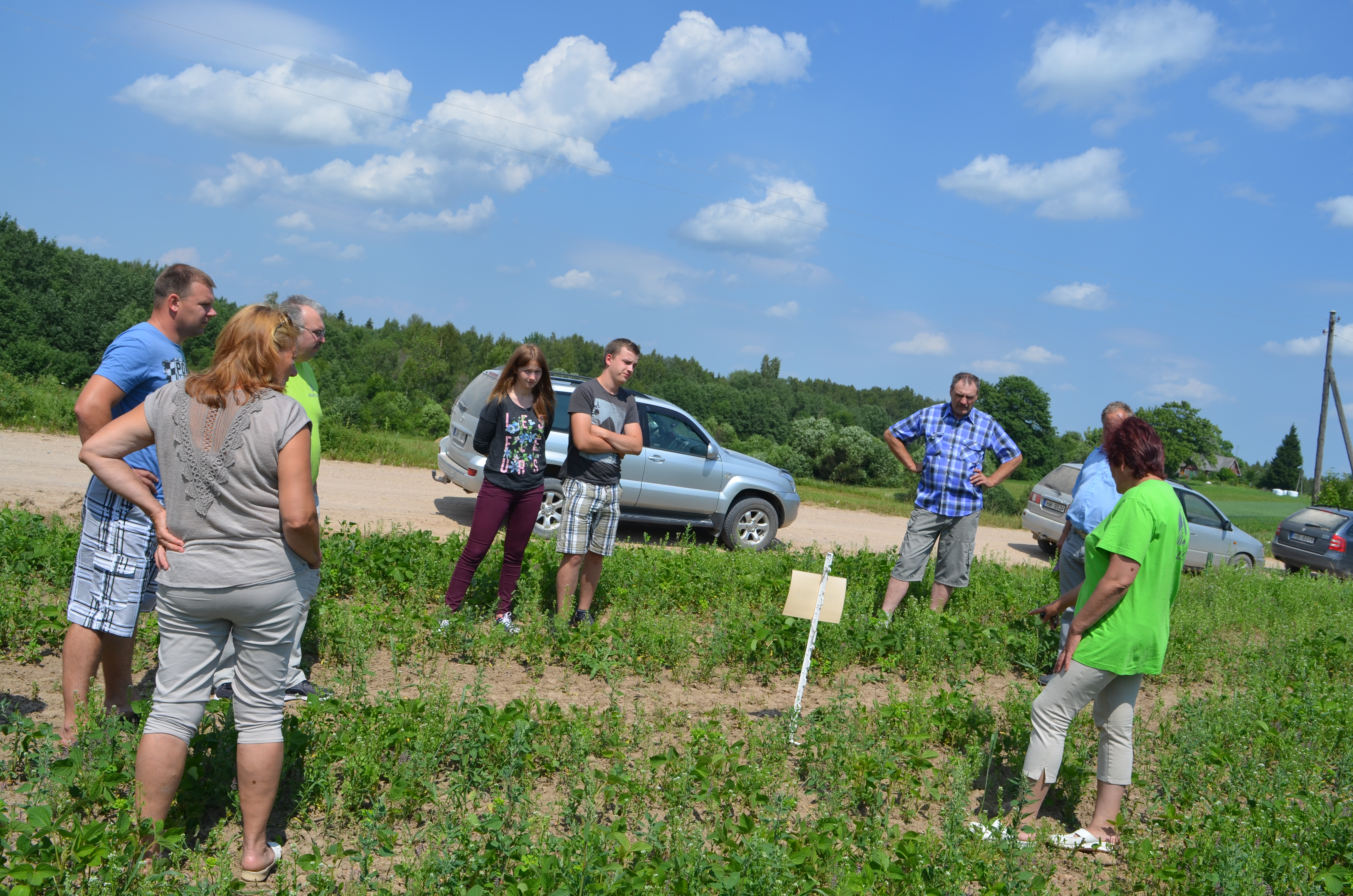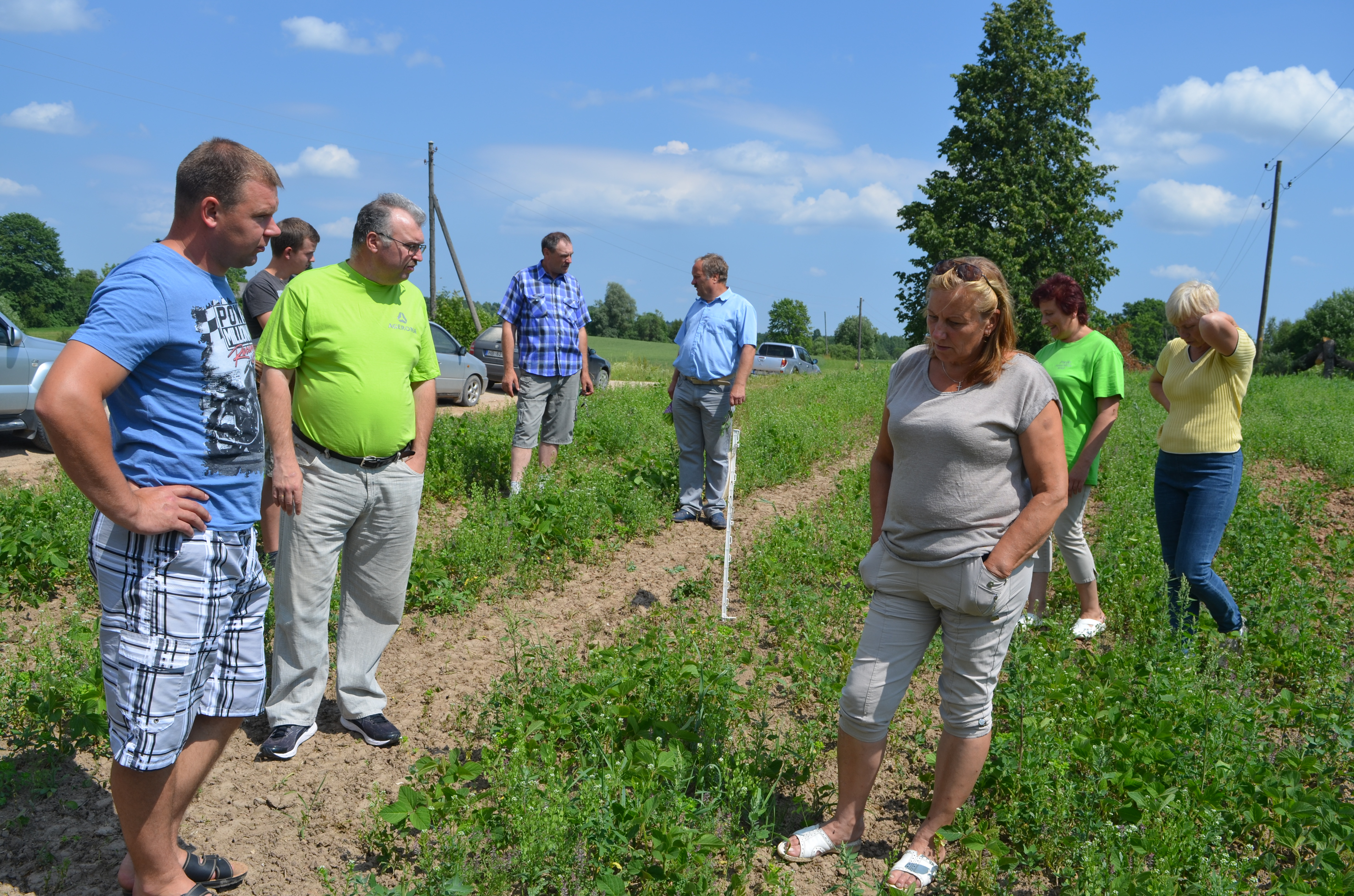 Lauku dienā augkopības konsultante Inese Magdalenoka iepazīstināja ar izmēģinājuma ierīkošanas gaitu un veiktajiem novērojumiem. Izmēģinājums ierīkots smilšmāla augsnē 1 ha platībā. Soja sēta 14.05.2016. rindsējā (12,5 cm), priekšaugs – vasaras kvieši, mēslojumā doti 30 t/ha liellopu kūtsmēsli.