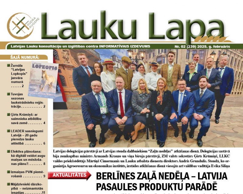 Informatīvā izdevuma “Lauku Lapa” februāra numurā plaša reportāža par Eiropā lielāko lauksaimniecības, pārtikas un dārzkopības izstādi “Zaļā nedēļa” un Latvijas līdzdalību tajā.