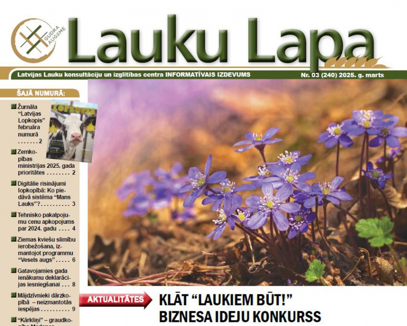 Informatīvā izdevuma “Lauku Lapa” marta numurā atgādinām, ka sācies biznesa ideju konkurss “Laukiem būt!”