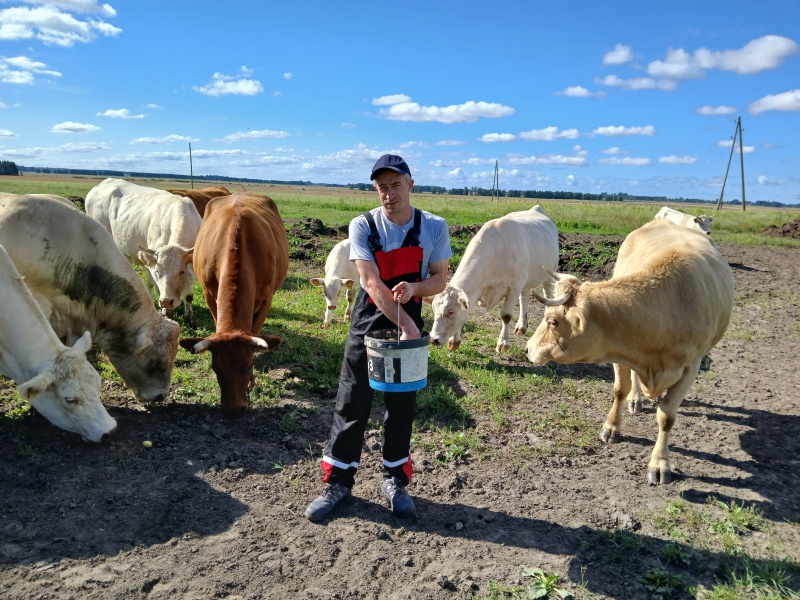Kad 2018. gadā Elmārs vēlējās uzsākt patstāvīgu saimniekošanu, vecāki nebija gatavi pilnībā vai daļēji nodot saimniecību vienam no bērniem, tādēļ Elmārs nolēma izveidot pats savu saimniecību. Bija neizdzēšami iespiedušies atmiņā vecmāmiņas Dainas stāsti par viņas vecākiem, kuri veiksmīgi saimniekoja savā zemē, savās mājās, par bērnību, kas pagāja lauku darbos, kuru grūtums jau bija piemirsies, par brīvu Latviju, kur katrs var būt saimnieks savā zemē. Mazajam Elmāram klausoties šķita – vecmāmiņa stāsta par kādu pasaku zemi, kurā viņš noteikti vēlētos nonākt, kad izaugs liels. Šie bērnības stāsti un atmiņas vēlāk nostiprināja pārliecību, ka, apdomīgi rīkojoties, iespējams kļūt par veiksmīgu lauksaimnieku. Izvēle krita uz gaļas liellopu nozari, jo to noteica pieejamā infrastruktūra – apkārtnē nomai bija pieejami 36 ha zālāju platību ar nedaudz aramzemes. Tā kā nebija lielu naudas uzkrājumu starta kapitālam un kredītsaistības uzņemties jaunais zemnieks nevēlējas, un, pat ja vēlētos – būtu grūti pārliecināt bankas dot kredītu pavisam nenodrošinātam iesācējam. Sākotnēji tika iegādāti seši liellopi, vecāki aizdeva nepieciešamo lauksaimniecības tehniku un saimniekošana varēja sākties. Elmārs devās uz LLKC Ventspils biroju, kura klients ir vēl joprojām, lai apgūtu profesionālās pilnveides izglītības programmu “Lauksaimniecības pamati”. Nākamais solis bija mērķtiecīga saimniecības darbības plānošana uz attīstību – 2019. gada nogalē dalība LAP attīstības programmas apakšpasākumā “Atbalsts uzņēmējdarbības uzsākšanai, attīstot mazās lauku saimniecības”, kas ļāva iegādāties nepieciešamo lauksaimniecības tehniku – siena ruļļu presi ar ietinēju, frontālo iekrāvēju un augsnes diskotāju. Lai nodrošinātu lopiem labturību atbilstošā līmenī, tika iegādāta apsildāma dzirdne izmantošanai aukstajos gadalaikos. Nu jau varēja sākt plānot ganāmpulka palielināšanu un virzību uz tīršķirnes lopiem. Elmārs kļuva par LLKC grāmatvedības pakalpojuma klientu, jo vēlējās pilnīgu sakārtotību attiecībās ar VID un savas saimniecības finanšu darbības pārredzamību.