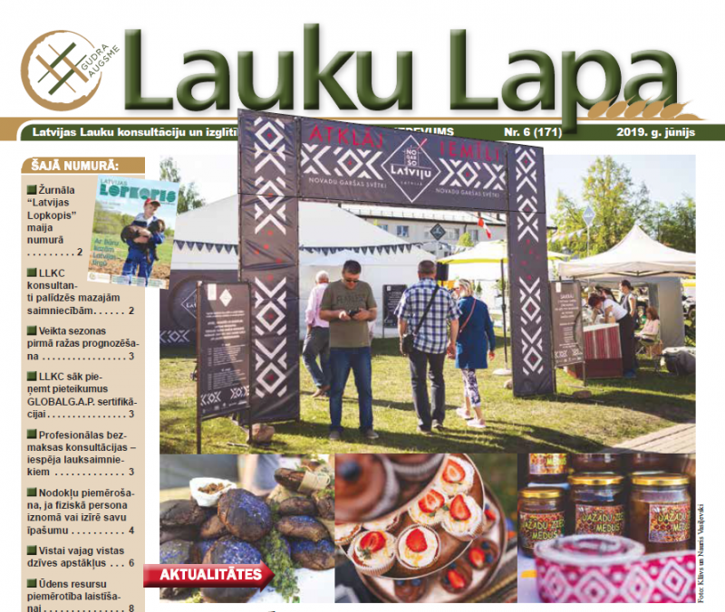 Iznācis LLKC informatīvā izdevuma “Lauku Lapa” jūnija numurs. Tajā publicēta  reportāžas par pirmo “Novada Garšas” pasākumu Valmierā. Informācija arī par citām LLKC aktualitātēm: konsultanti palīdz mazajām lauku saimniecībām, sākas pieteikumu pieņemšana GLOBALG.A.P. sertifikācijai, tiek sniegtas profesionālas bezmaksas konsultācijas lauksaimniekiem, veikta pirmā šīssezonas ražas prognozēšana.