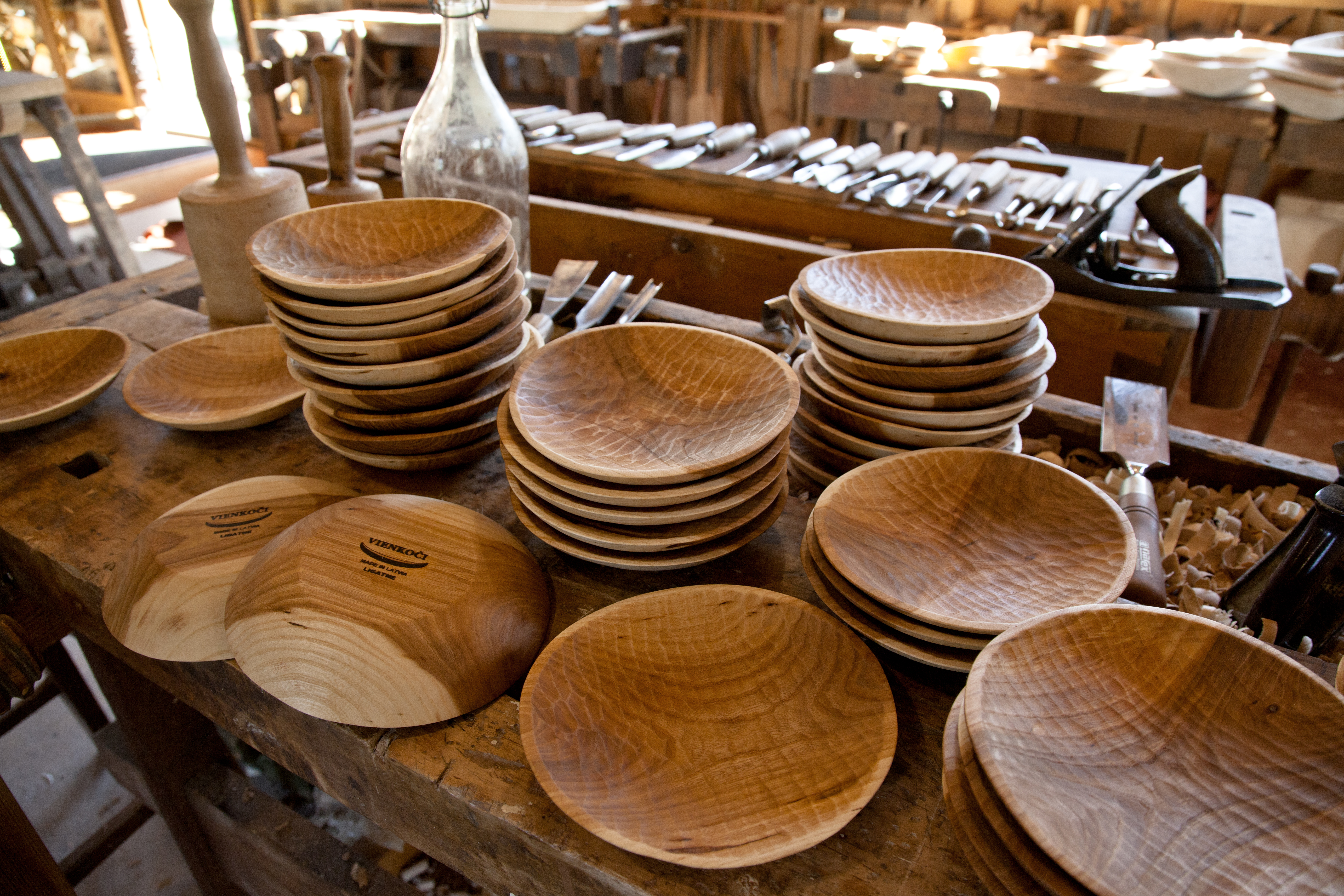 Vienkoču trauki darbnīcā tiek izgatavoti no zaļā koka un žāvēti tikai pirms pēdējiem apdares posmiem. Koka trauku izgatavošanā izmantoti dažādi lapu koki – goba, ozols, kļava, liepa, bērzs, pīlādzis, ieva. Šie trauki paredzēti universālai lietošanai, lielākoties servēšanai. Apdarē tiek izmantoti dabas produkti – propoliss, propolisa vaska un lineļļas sakausējums, kas Latvijā līdz šim nav ticis pielietots un arī citur pasaulē šādā kombinācijā nav plaši pazīstams. Melnajiem traukiem tiek izmantota dedzināšanas metode. Tā ietonē koku melnā krāsā. Jaunajā ēkā radīta vide vienkoču trauku, maizes abru un citu masīvkoka lietu ražošanai. Trauki gatavoti ar augstu pievienoto vērtību no salīdzinoši neliela diametra vietējā Gaujas nacionālā parkā reiz augošiem lapu kokiem un kokzāģētavām nederīgajiem gobas nomaļiem. Šie materiāli citkārt būtu vienkārši malka, ne produkts ar augstu pievienoto vērtību. Ražošanā tiek izmantots zaļais koks, un izstrādājums tikai beigu stadijā tiek izžāvēts. Tas ļauj izgatavot produktu ar mazu atgriezumu daudzumu. “Vienkočos” izgatavotajām maizes abrām meistars Rihards Vidzickis dod mūža garantiju. Tas nozīmē, ka pat tad, ja nepareizas lietošanas vai koka niķu rezultātā maizes abriņa būs ieplaisājusi, meistars to salabos, neprasot atlīdzību, jo meistaram rūp katras viņa izgatavotās abriņas turpmākās gaitas.