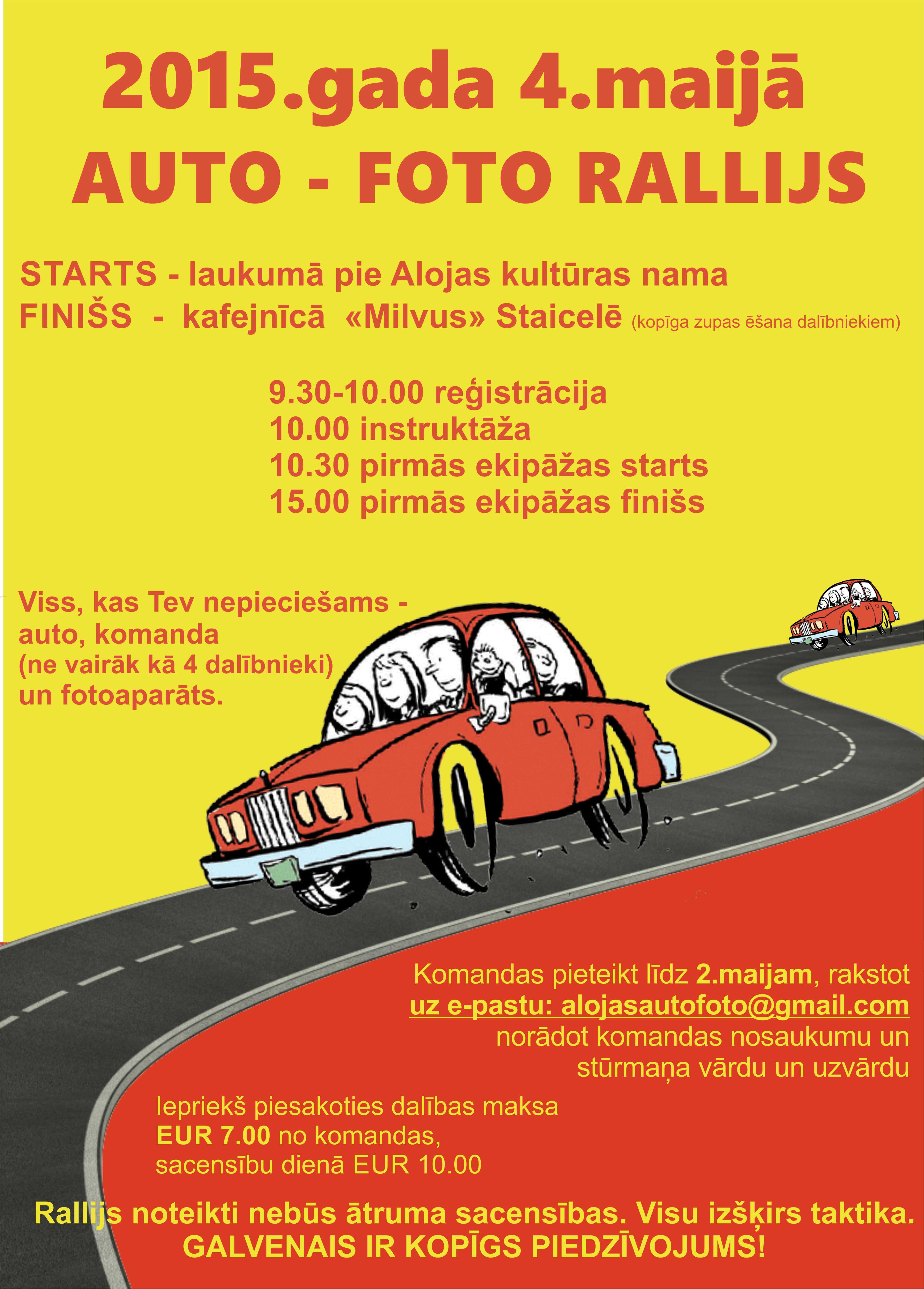 Komandas pieteikt līdz 2.maijam, rakstot uz e-pastu: alojasautofoto@gmail.com, norādot komandas nosaukumu un stūrmaņa vārdu un uzvārdu, vēlams norādīt arī dalībnieku skaitu.