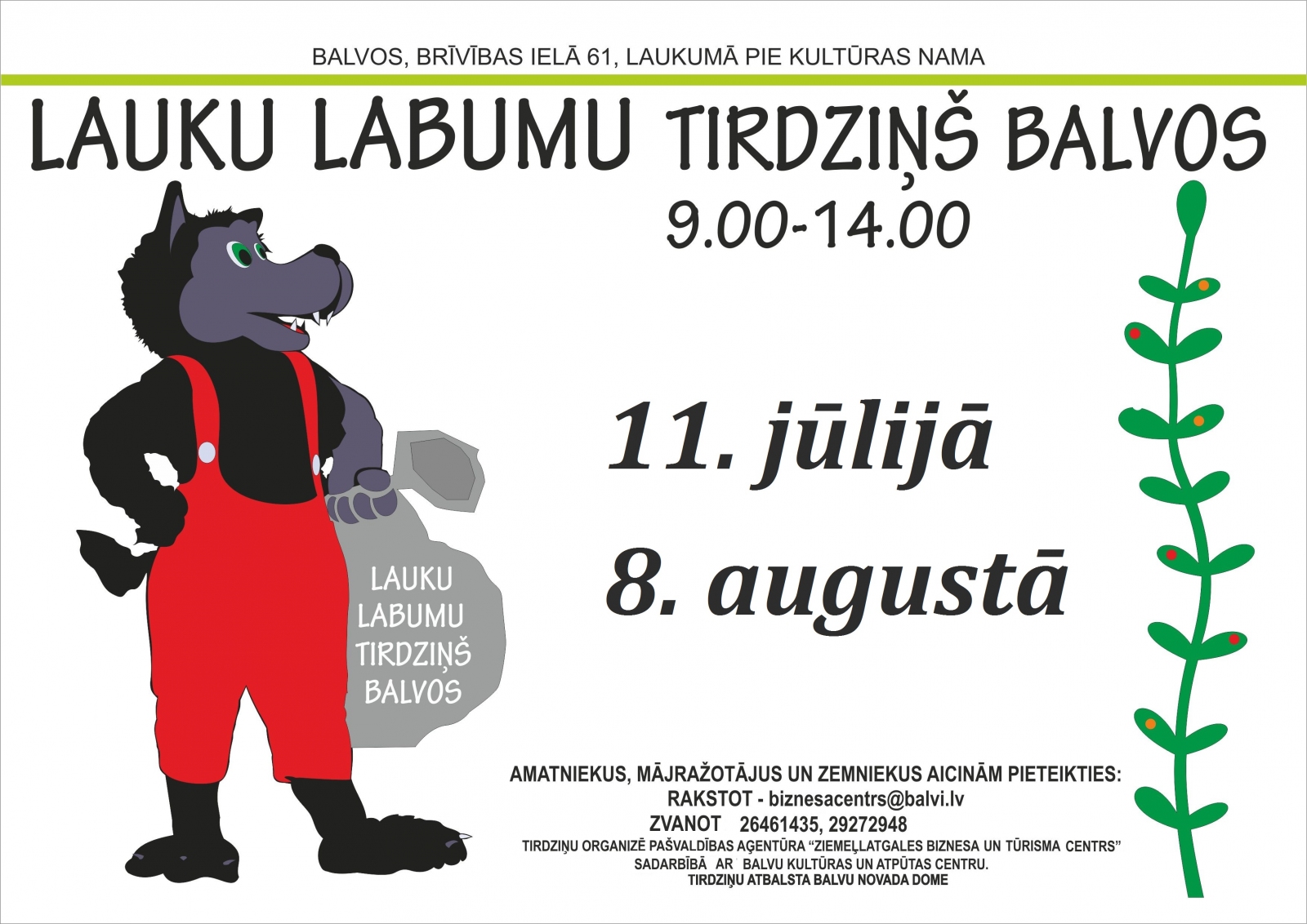 Piedalīties aicinām vietējos zemniekus, amatniekus un mājražotājus! Īpaši gaidīti vietējie stādu un sezonas dārzeņu, augļu un ogu audzētāji! Tirgotājiem lūgums pieteikties savlaicīgi (līdz 9. jūlijam) - Ziemeļlatgales biznesa un tūrisma centrā: rakstot uz biznesacentrs@balvi.lv, turisms@balvi.lv vai zvanot 26461435, 29272948.