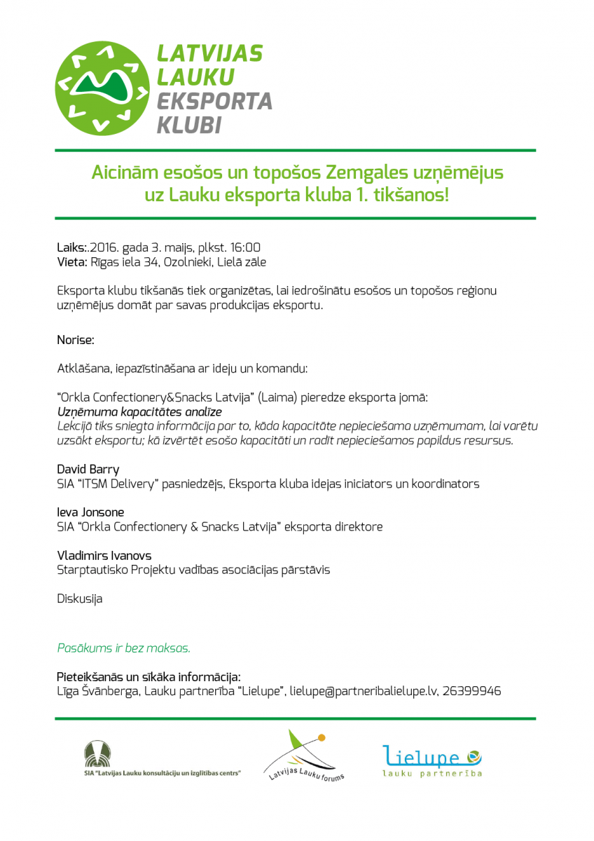 Esošo un topošo Vidzemes uzņēmēju Lauku eksporta klubu 1.tikšanās!
