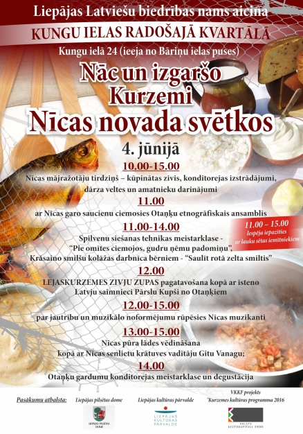 10.00-15.00 Nīcas mājražotāju tirdziņš – kūpinātas zivis, konditorejas izstrādājumi, dārza veltes un amatnieku darinājumi.