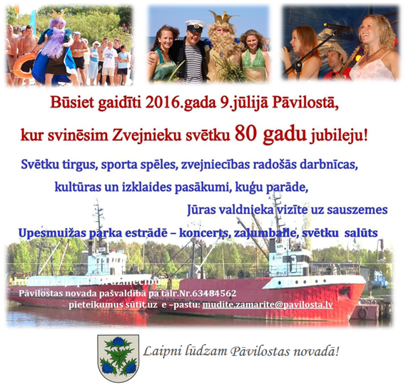 2016. gada 9. jūlijā būsiet gaidīti Pāvilostā, kur svinēsim Zvejnieku svētku 80 gadu jubileju!
