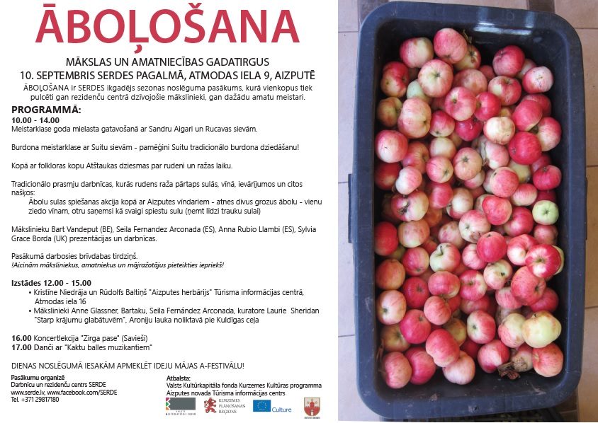 ĀBOĻOŠANA ir SERDES ikgadējs sezonas noslēguma pasākums, kurā vienkopus tiek pulcēti gan rezidenču centrā dzīvojošie mākslinieki, gan dažādu amatu meistari. SERDE 2016. gadā saņēmusi UNESCO Starpvaldību komitejas padomdevējinstitūcijas akreditāciju nemateriālā kultūras mantojuma saglabāšanas jomā, tādēļ šogad īpaši vēlamies aktualizēt mākslas un tradicionālās kultūras kopsakarības.