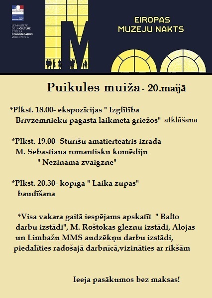 Visa pasākuma gaitā iespējams apskatīt "Balto darbu izstādi", Mirdzas Roštokas gleznu izstādi, Alojas un Limbažu MMS audzēkņu darbu izstādi. Iespējams piedalīties radošā darbnīcā un vizināties ar rikšām.