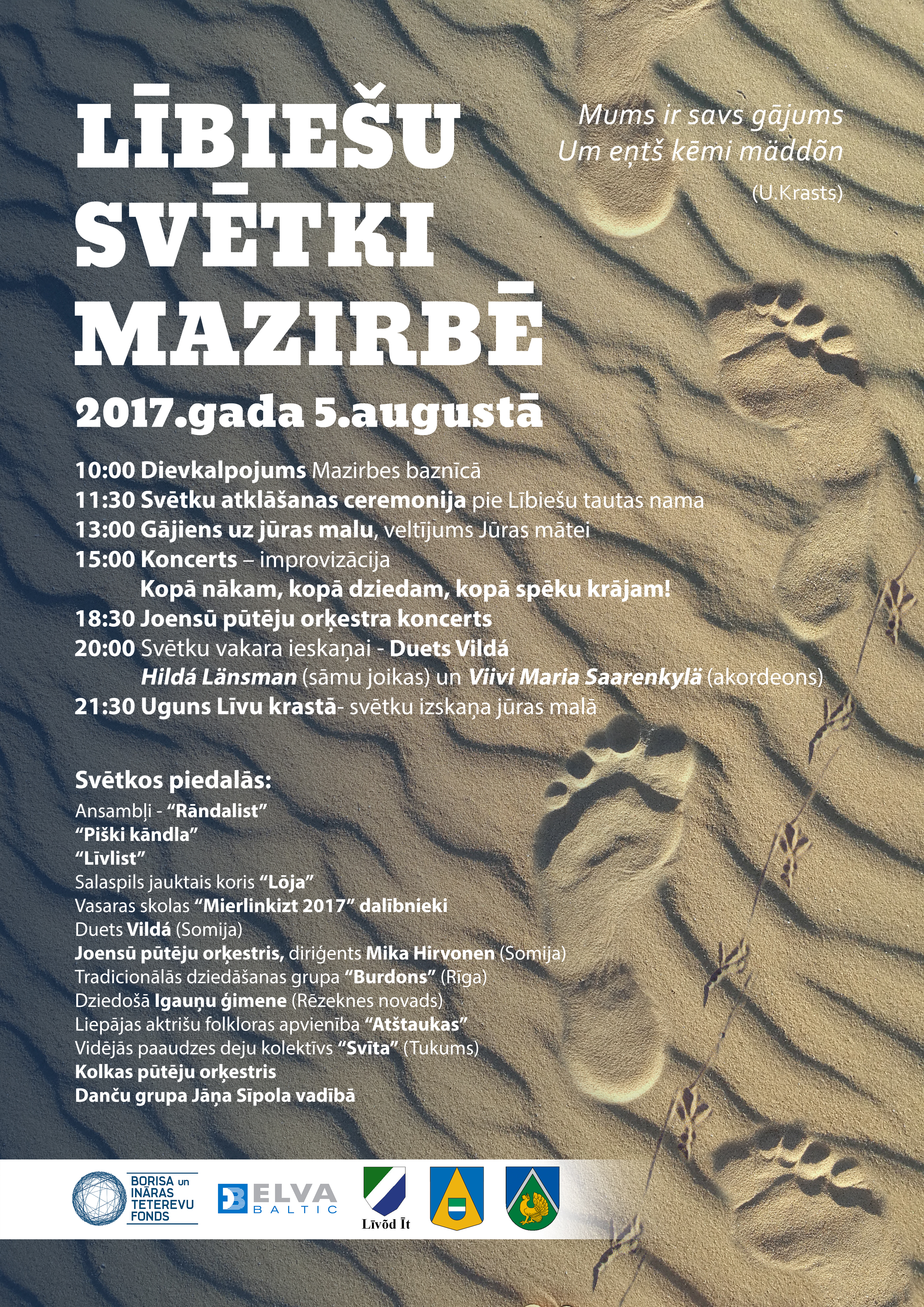 5. augustā Mazirbē notiks tradicionālie Lībiešu svētki. Tajos atkal pulcēsies lībieši, viņu pēcteči, radi un draugi, lai kopā pavadītu laiku dziesmās, dančos, rotaļās un saviesīgās sarunās. Lai kavētos atmiņās, satiktu sen neredzētus kaimiņus, skolas biedrus un draugus. Katram ikdienā ir savs gājums, tomēr Mazirbē Lībiešu svētkos visi ceļi satiekas, lai ar prieku savu svētku dienu pavadītu kopā. Tuvi un tāli ciemiņi no Latgales, Kurzemes, Zemgales, Vidzemes un Somijas 5. augustā satiksies Lībiešu krastā!