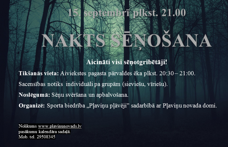 15.septembrī plkst.21:00, pulcēšanās no 20:30