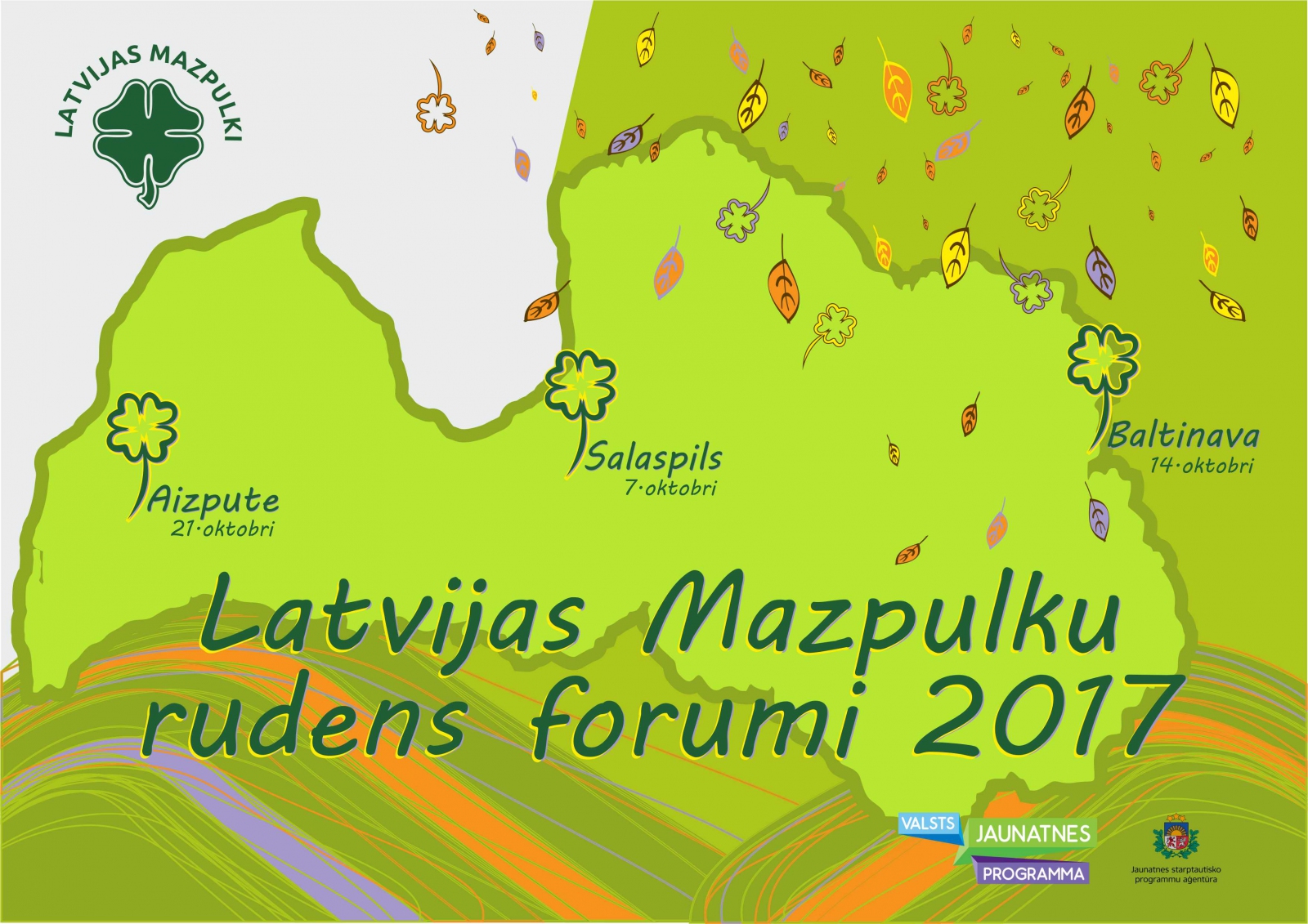 * Vidzemes – Zemgales - Latgales mazpulcēnu forums 7.oktobris, Nacionālais botāniskais dārzs Salaspilī un Salaspils 2.vidusskola Koordinatore: Randa Ķeņģe (mob. 29617871).