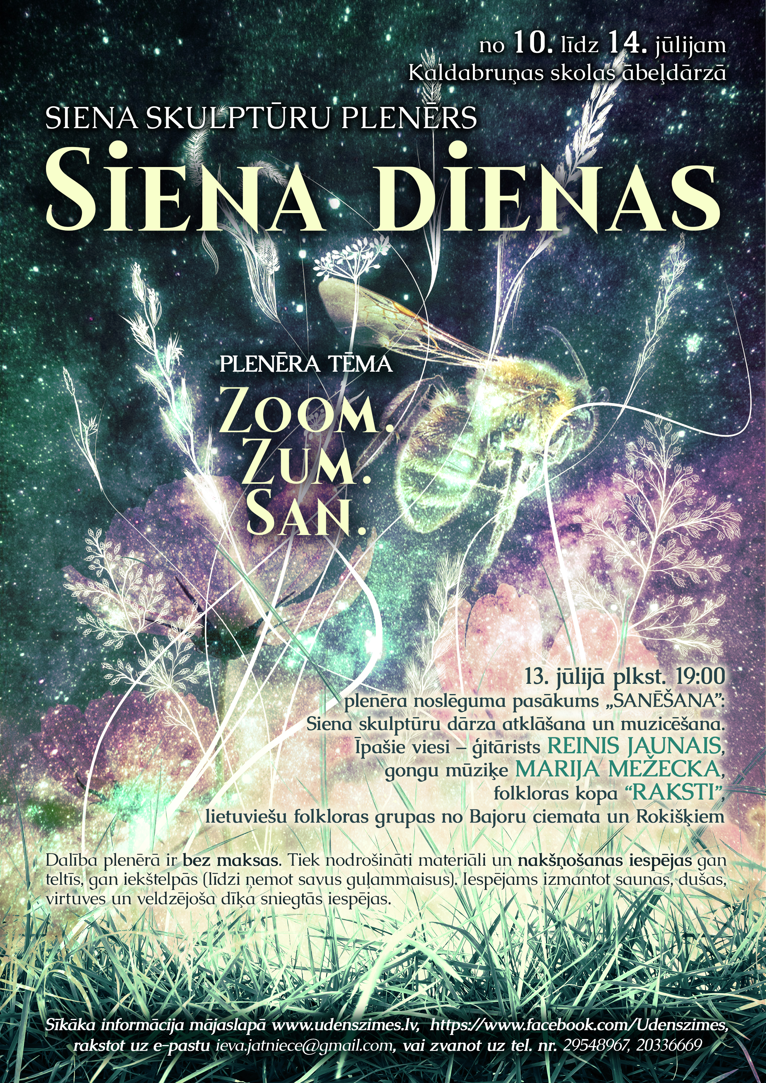 No 10. līdz 14. jūlijam biedrības „Ūdenszīmes” skaistajā mājvietā - bijušās Kaldabruņas sākumskolas āra teritorijā – nu jau vienpadsmito gadu norisināsies siena skulptūru plenērs „Siena dienas”. Plenēra laikā ir paredzēti divi īpašie notikumi: 12. jūlijā no pl. 12 00 - audio – foto ieraksta “Kā zāle aug” veidošana un 13. jūlijā plkst. 19:00 plenēra noslēguma pasākums „Sanēšanas festivāls”.