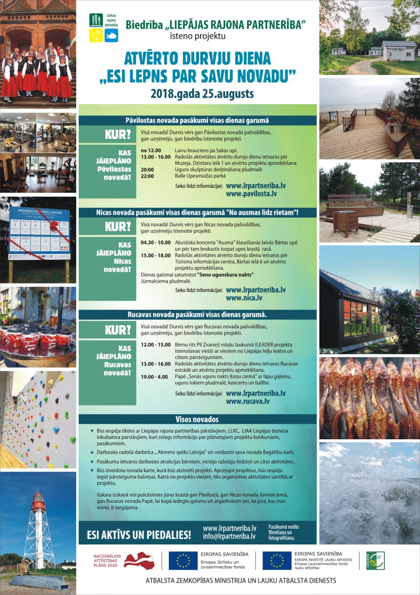 25.augustā Pāvilostas, Rucavas un Nīcas novados biedrība "Liepājas rajona partnerība"organizē atvērto durvju dienas "Esi lepns par savu novadu".