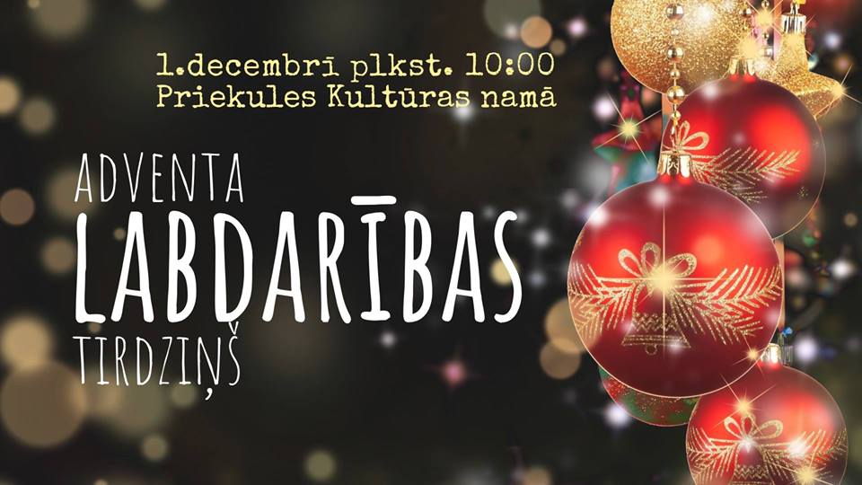 1.decembrī Priekules kultūras namā ikviens aicināts uz Priekules baptistu draudzes organizēto ikgadējo Adventa Labdarības tirdziņu!
