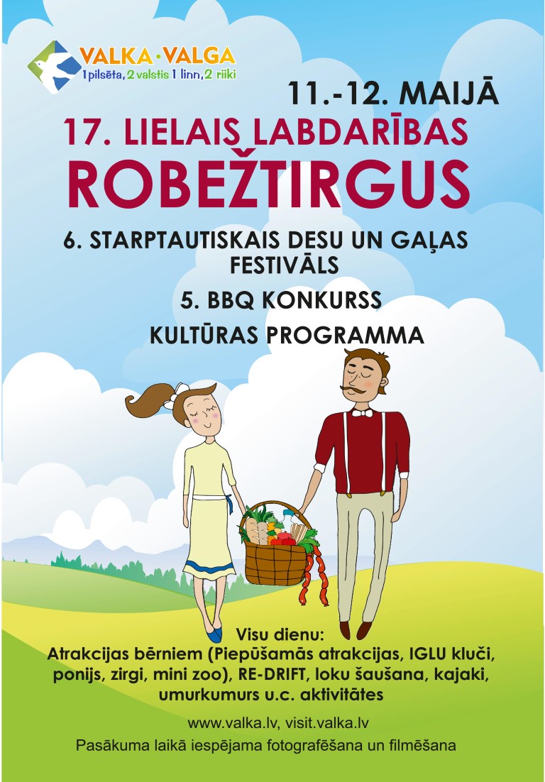 Labdarības loterija, tirgotāju andelēšanās, plaša kultūras programma, izklaides bērniem, umurkumurs, un citas aktivitātes sagaida Robežtirgus apmeklētājus un dalībniekus 11. un 12. maijā abpus robežas – Valkā un Valgā!