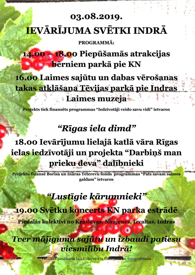 03.08.2019. notiks "'Ievārījuma svētki Indrā"