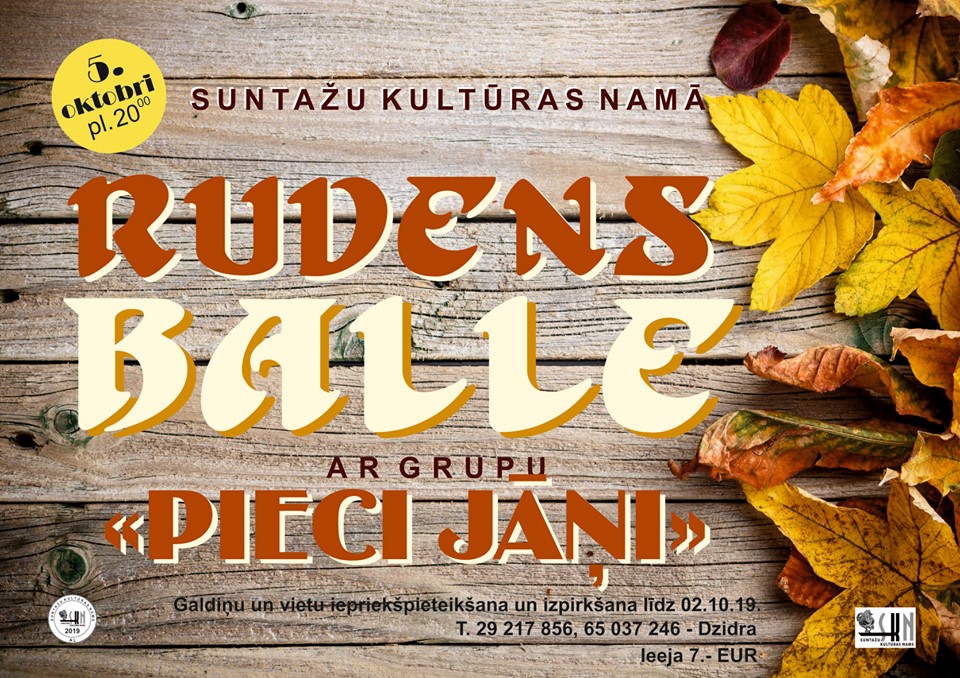 Kā ierasts, tirgus dienā Suntažos notiks arī lustīga rudens balle, kurā spēlēs grupa “Pieci Jāņi”. Balle sāksies plkst. 20.00 un noslēgsies plkst. 01.00. Vietas pie galdiņiem vēl var pieteikt, tālr. 65037246, 29217856 (Dzidra).