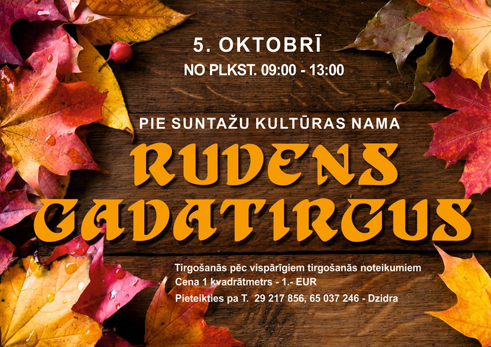 Šo sestdien, 5. oktobrī, plkst.9.00 Suntažos sāksies Rudens gadatirgus, bet dienas noslēgumā, plkst.20.00, Suntažu Kultūras namā - balle!