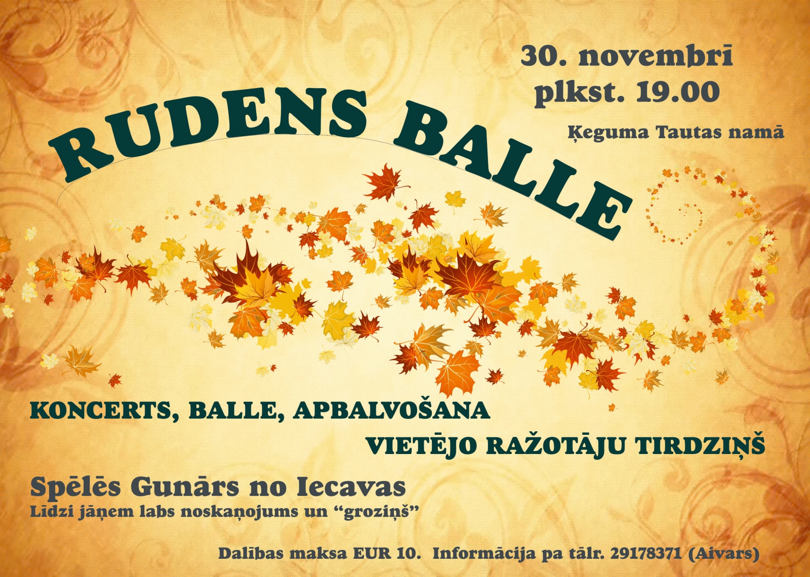 30.novembrī plkst.19.00 Ķeguma tautas namā Rudens balle.