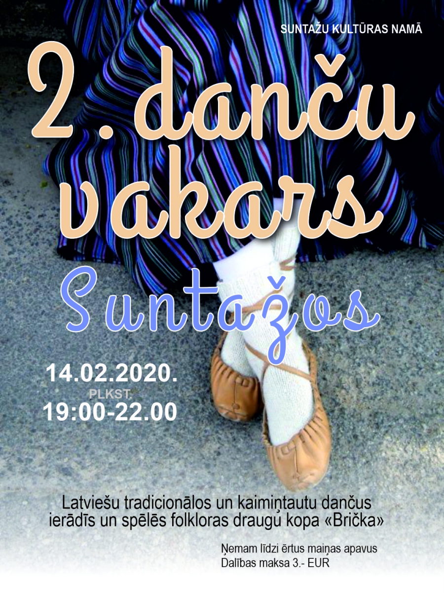 14. februārī plkst. 19.00-22.00 2. DANČU VAKARS SUNTAŽOS.