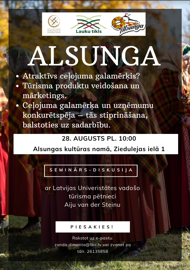 Aicinām piedalīties Valsts Lauku tīkla Sekretariāta pasākumu ietvaros organizētā seminārā-diskusijā "Alsungas konkurētspējas stiprināšana".