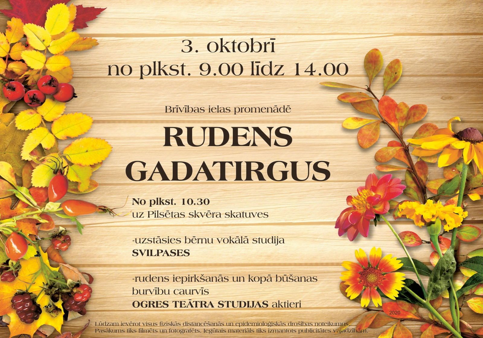 Tirdziņā valdīs lustīga noskaņa un no pulksten 10.30 Pilsētas skvērā tirgus apmeklētājus ar muzikāliem priekšnesumiem sveiks bērnu vokālā studija SVILPASTES, savukārt rudens iepirkšanās un kopā būšanas burvību caurvīs OGRES TEĀTRA aktieri.