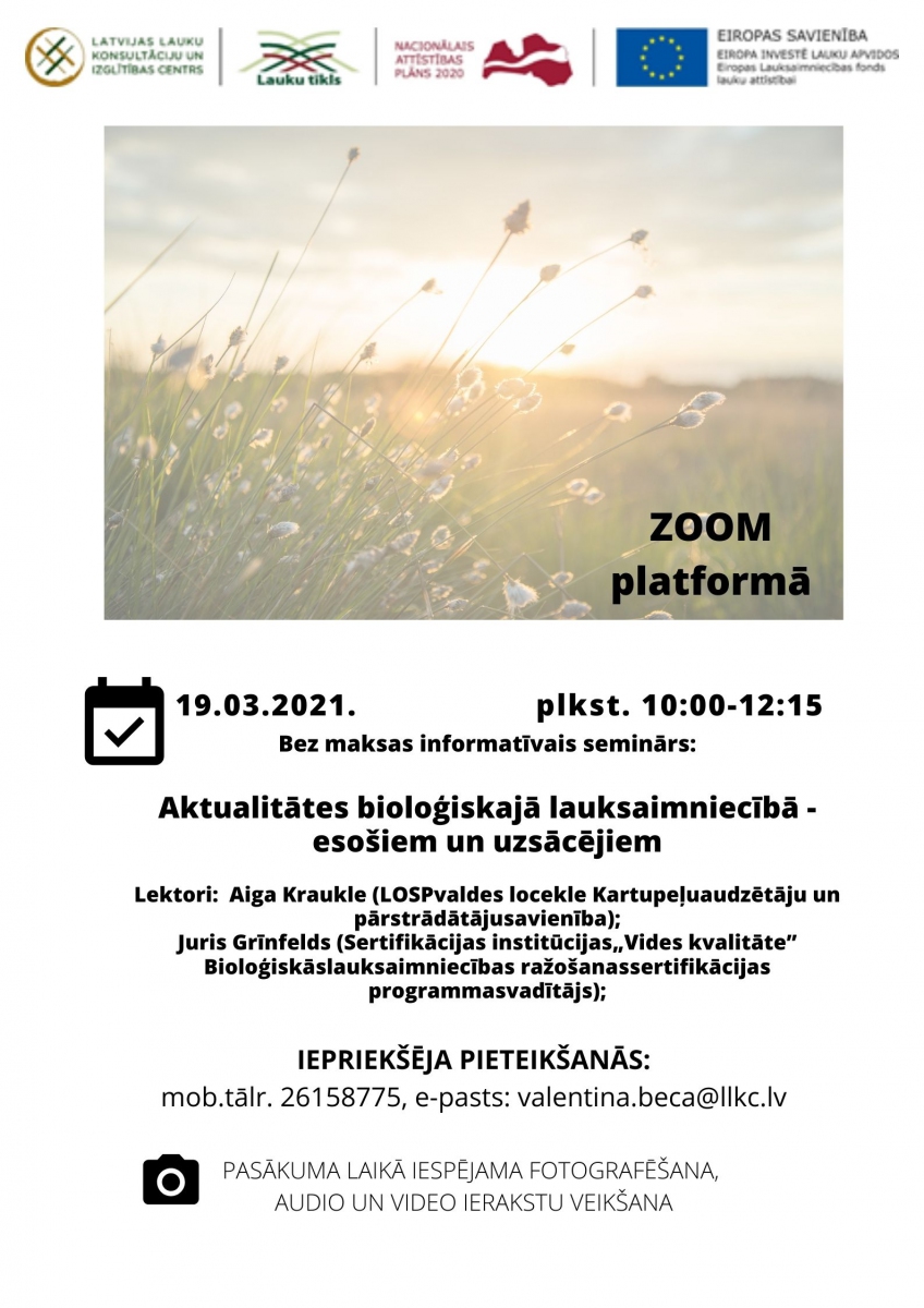 Tēma : Aktualitātes bioloģiskajā lauksaimniecībā - esošiem un uzsācējiem