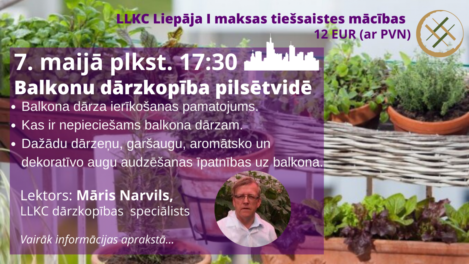 07.05.2021 | Maksas mācības "Balkonu dārzkopība pilsētvidē" (lektors - MĀRIS NARVILS) - http://laukutikls.lv/nozares/lauku-telpa/notikumi/2021-05-07-000000/0705...