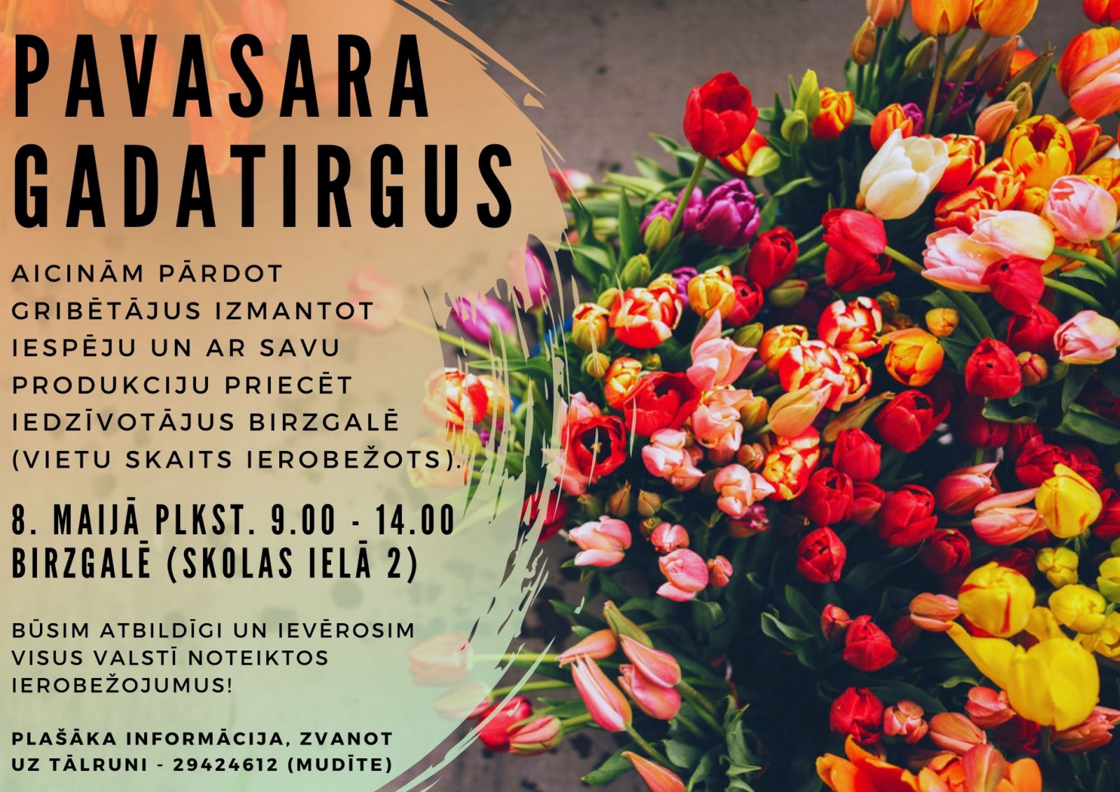 8. maijā no plkst. 9.00 līdz 14.00 Birzgalē, Skolas ielā 2, uz laukuma un ap to norisināsies pavasara gadatirgus.