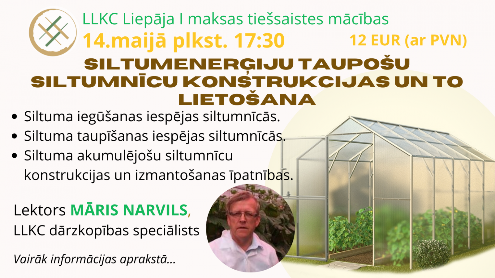 LLKC Liepājas birojs piedāvā maksas tiešsaistes mācības "SILTUMENERĢIJU TAUPOŠU SILTUMNĪCU KONSTRUKCIJAS UN TO LIETOŠANA".