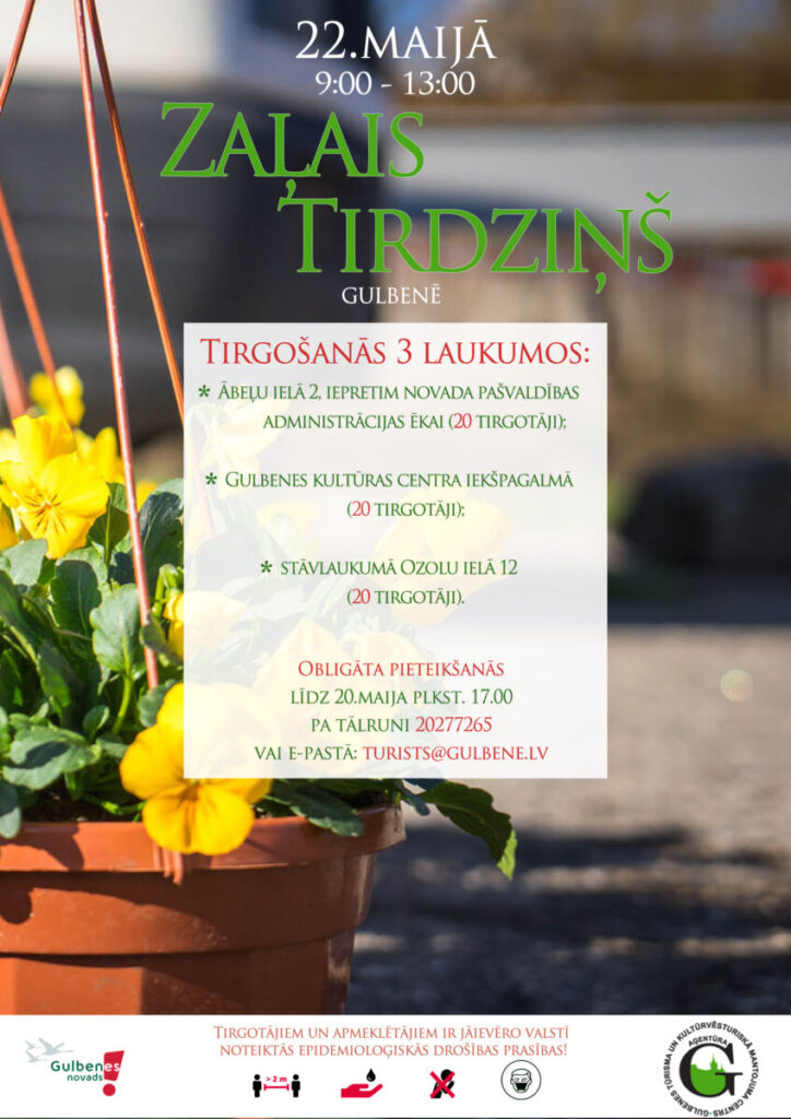 Arī šoreiz tirdzniecība Zaļajā tirdziņā tiks organizēta trīs vietās, ievērojot drošas tirdzniecības prasības. Katrā vietā varēs tirgoties 20 tirgotāji. Ābeļu ielā 2, iepretim novada pašvaldības administrācijas ēkai varēs iegādāties mājražotāju gatavotos gardumus un pārtikas preces, Gulbenes kultūras centra iekšpagalmā – amatnieku izstrādājumus, savukārt stāvlaukumā Ozolu ielā 12 – dažādus stādus, puķes, augļu kokus un krūmus, košumkrūmus.