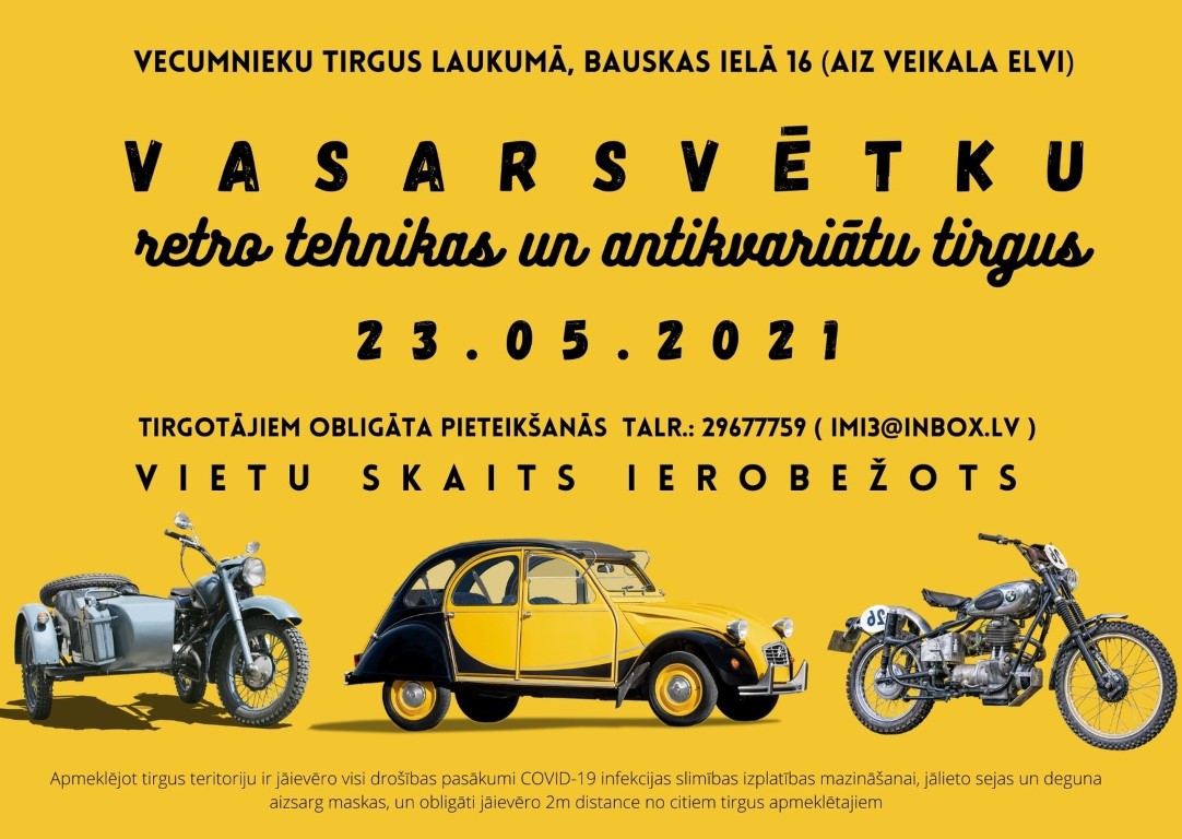 Vasarsvētku retro tehnikas un antikvariātu tirgus notiks 23. maijā, Vecumnieku tirgus laukumā, Bauskas ielā 16.