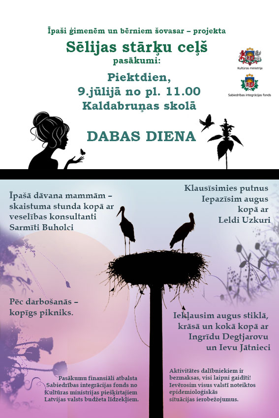 Piektdien, 9.jūlijā no pl. 11 00 Kaldabruņas skolā „Dabas diena” - biedrības „ŪDENSZĪMES”rīkots pasākums projekta „Sēlijas stārķu ceļš” ietvaros.
