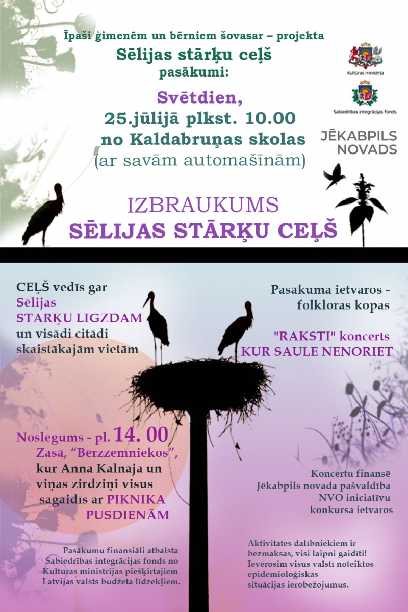 Pasākumu „Sēlijas stārķu ceļš” finansiāli atbalsta Sabiedrības integrācijas fonds no Kultūras ministrijas piešķirtajiem Latvijas valsts budžeta līdzekļiem.