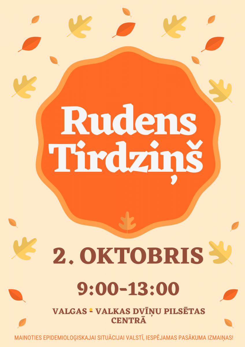 Valkas Tūrisma un informācijas birojs 2.oktobrī no pl.9.00 līdz 13.00, organizē Rudens tirdziņu, Valgas - Valkas Dvīņu pilsētas centrā.