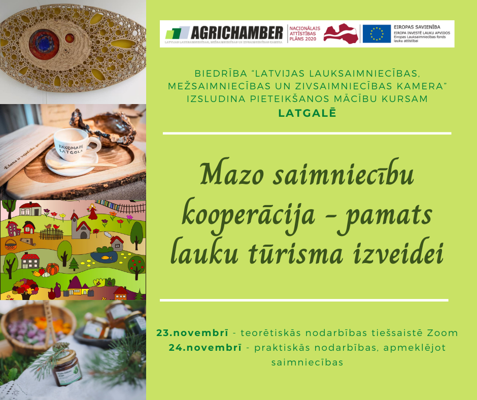 Biedrība “Latvijas lauksaimniecības, mežsaimniecības un zivsaimniecības kamera” izsludina pieteikšanos mācību kursam “Mazo saimniecību kooperācija - pamats lauku tūrisma izveidei” Latgalē.