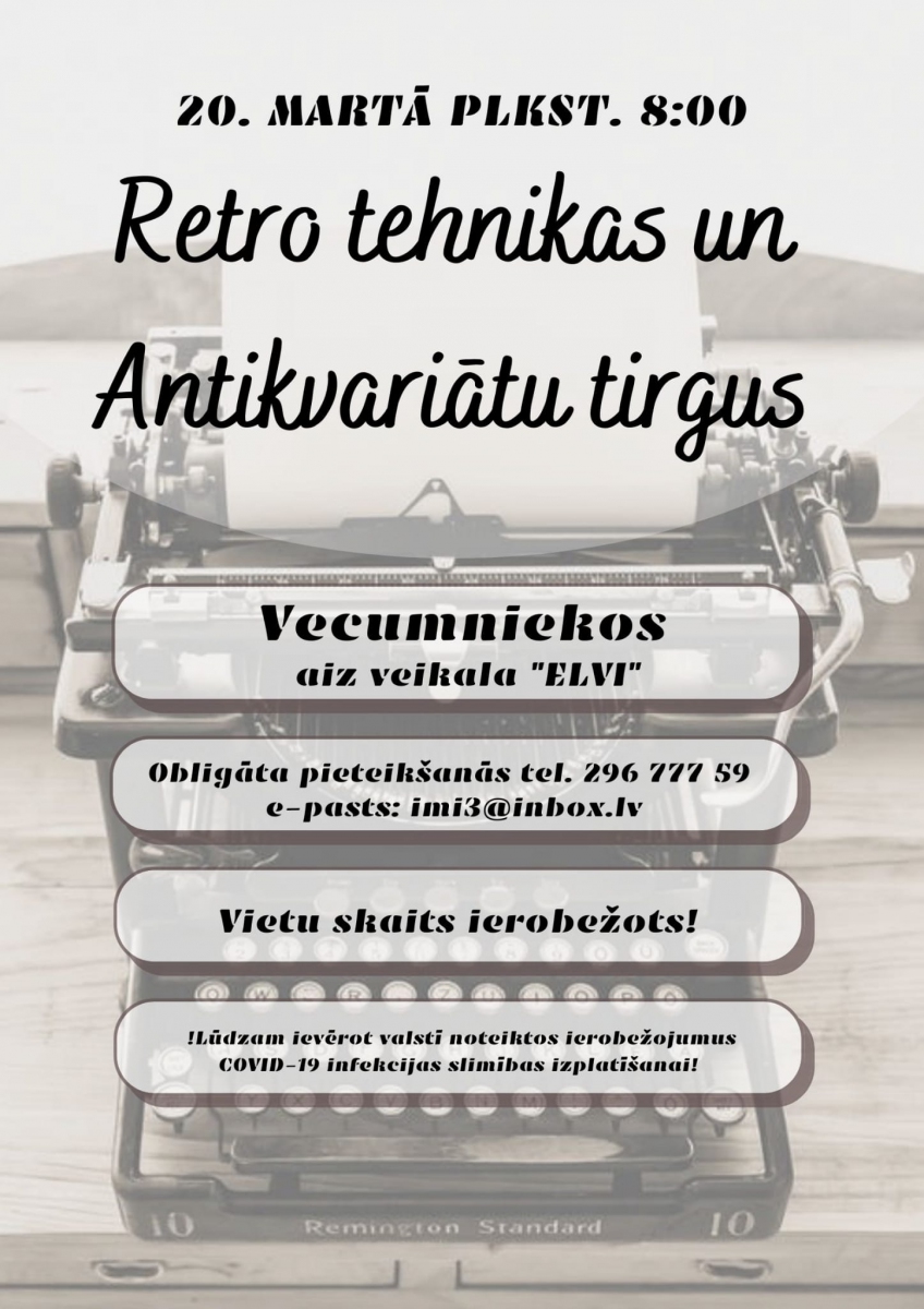 Tiek rīkots “Retro tehnikas un antikvariātu tirgus” 20 martā,plkst 8:00, Vecumniekos, Bauskas ielā 16.