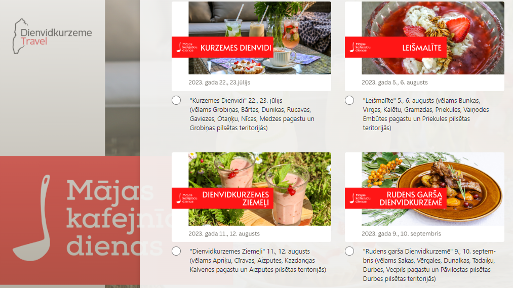 Vairāk informācijas un pieteikuma anketa -> http://www.dienvidkurzeme.travel/majas-kafejnicu-dienas/